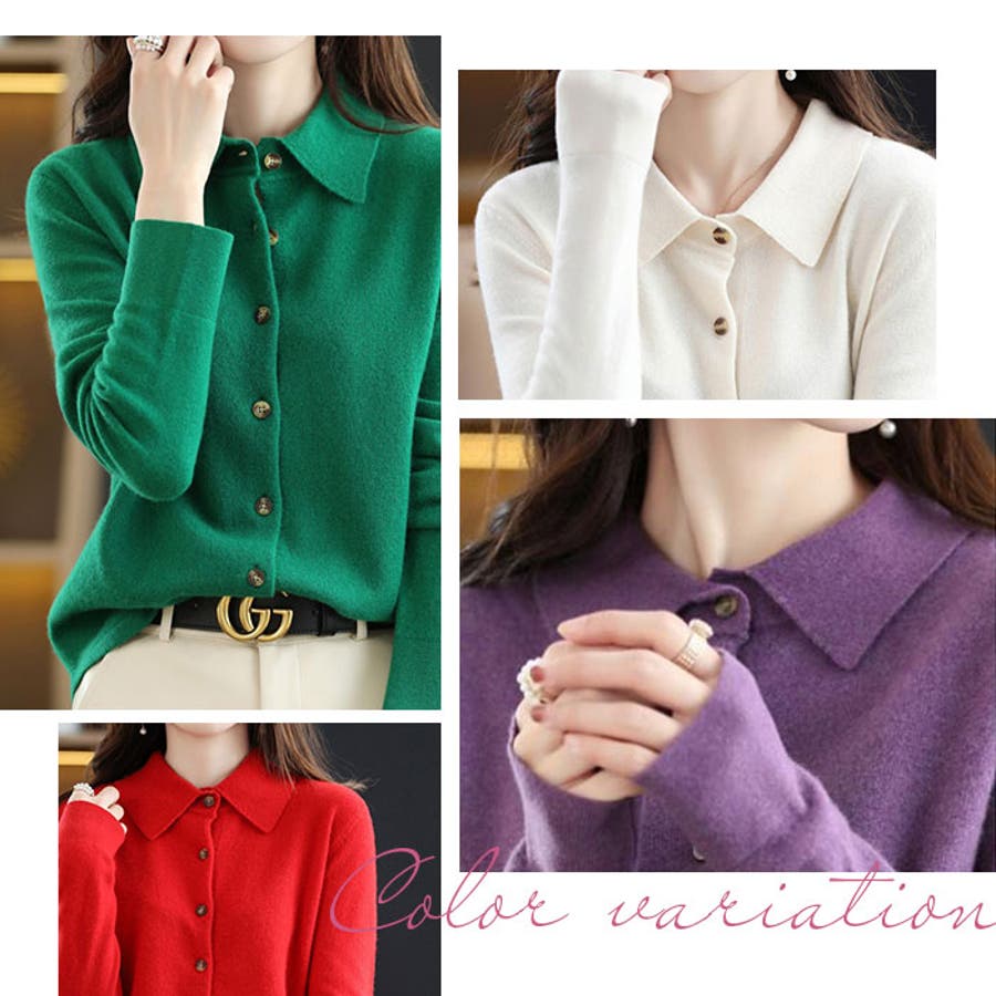 【キーワード】ニットカーディガン セーター カーデガン トップス 秋 冬 ニットシャツ 長袖 カシミヤタッチ きれいめ 秋冬 前開き 襟付き polo襟 ポロカラー シンプル 可愛い オフィス 通勤 柔らか あったか