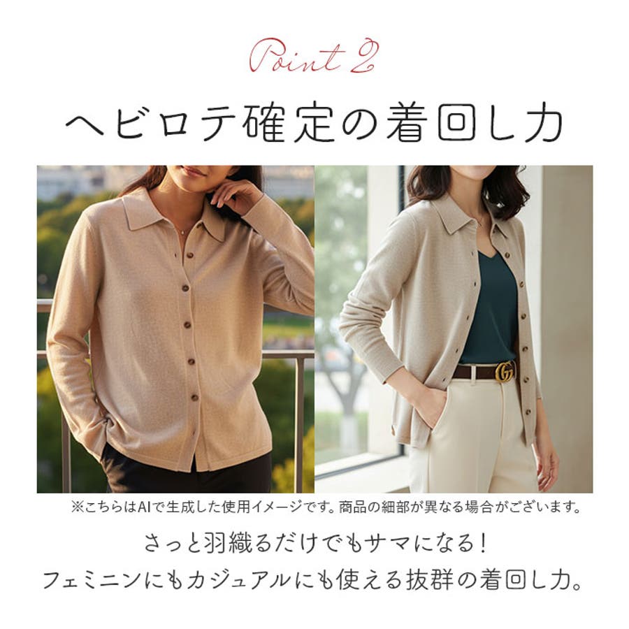 ・着るだけで洗練された印象に仕上がる襟付き ニットカーディガン。