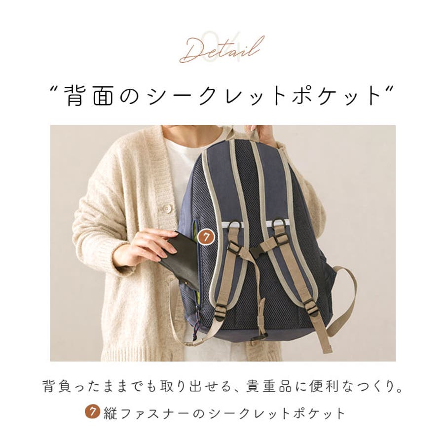 ・軽量でコンパクトなサイズ感ながら、容量は約17L。しっかり入るのに持ち歩きやすく、満員電車などの人混みでも邪魔になりにくいのがポイント。