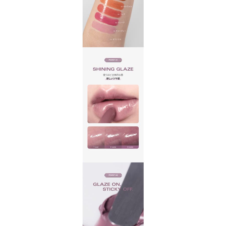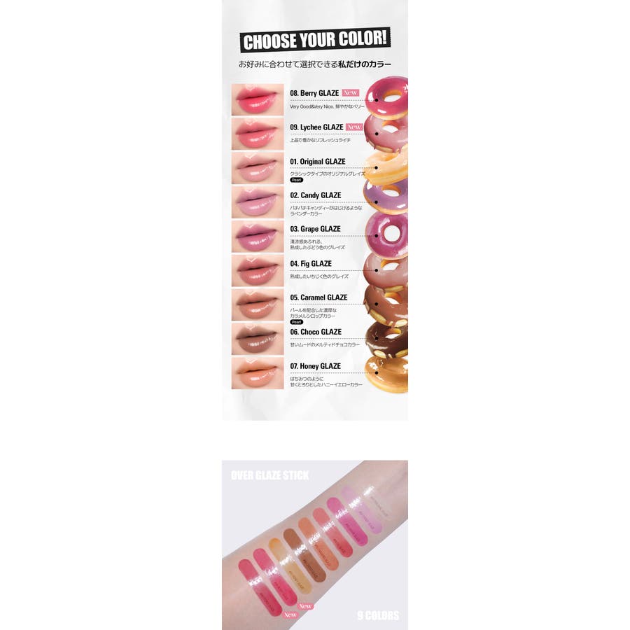 | カラー | 01オリジナルグレイズ / 02キャンディグレイズ / 03グレープグレイズ / 04フィググレイズ / 05カラメルグレイズ / 06チョコグレイズ / 07ハニーグレイズ / 08ベリーグレイズ / 09ライチグレイズ |