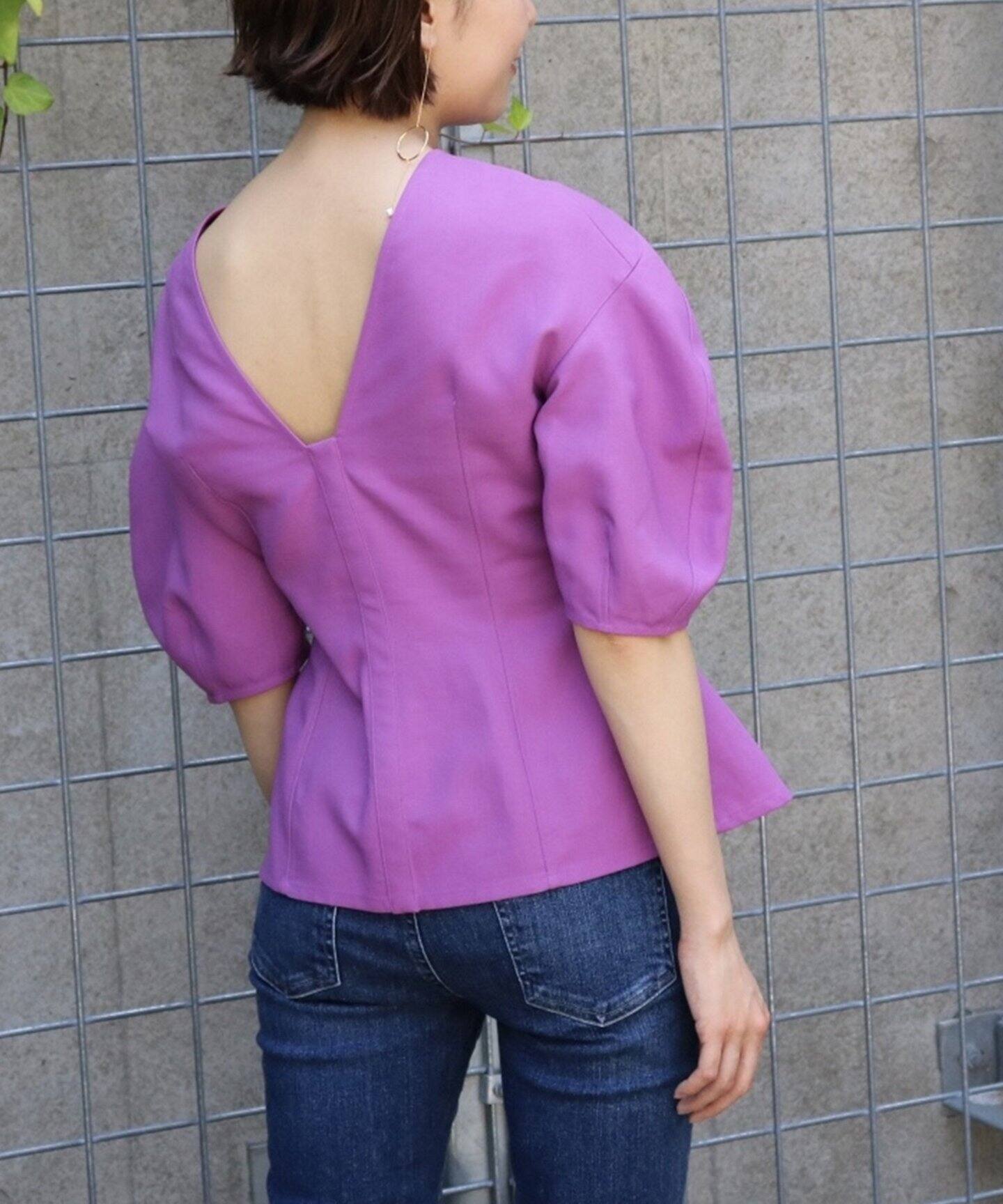 丸みを帯びるショルダー周りと身頃のペプラムシルエットが全体のバランスにメリハリを付けてくれ、自然なスタイルアップ効果も期待。