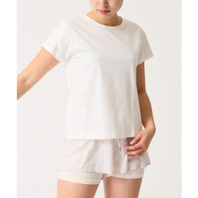 コットンリヨセル素材で肌触りも良く、シンプルなTシャツのバックをカシュクールデザインで動きやすい仕様に。スッキリとした襟元にする為に伏せテープ仕様にしております。