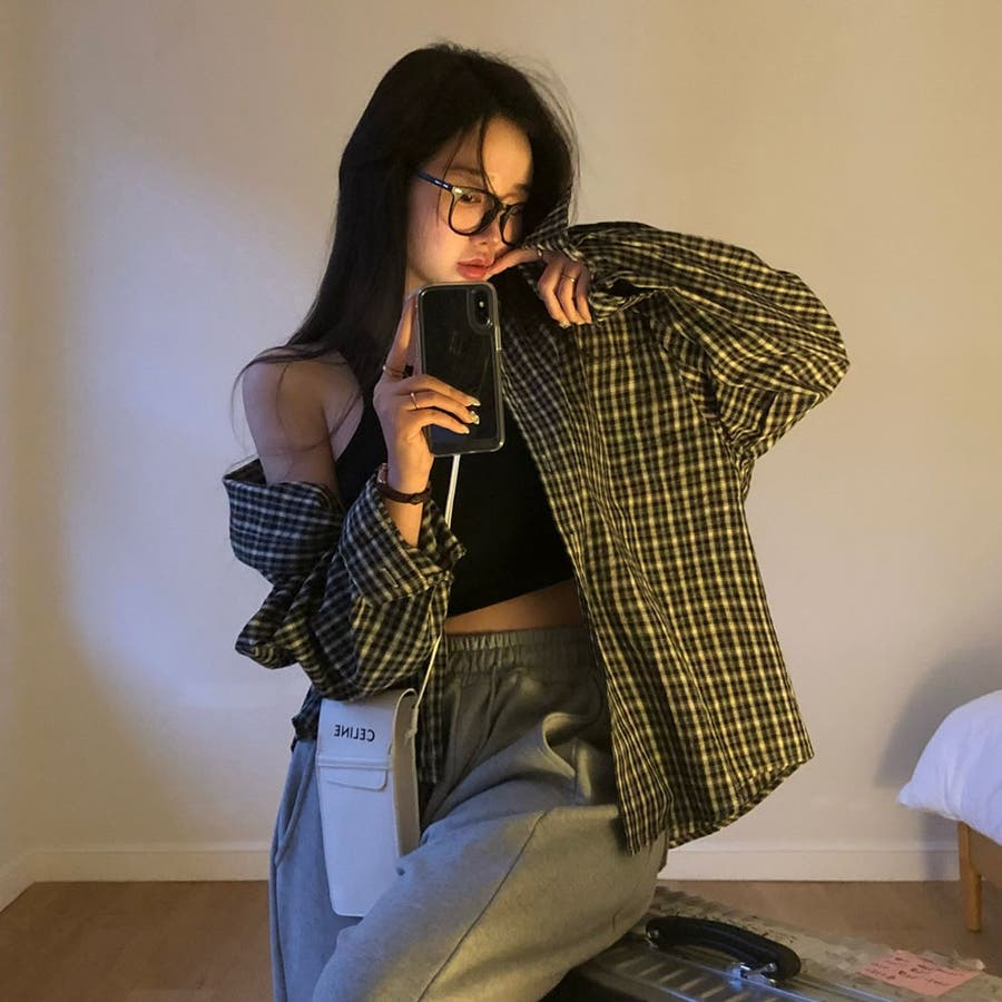 カジュアルオーバーフィットチェックシャツ bs1161