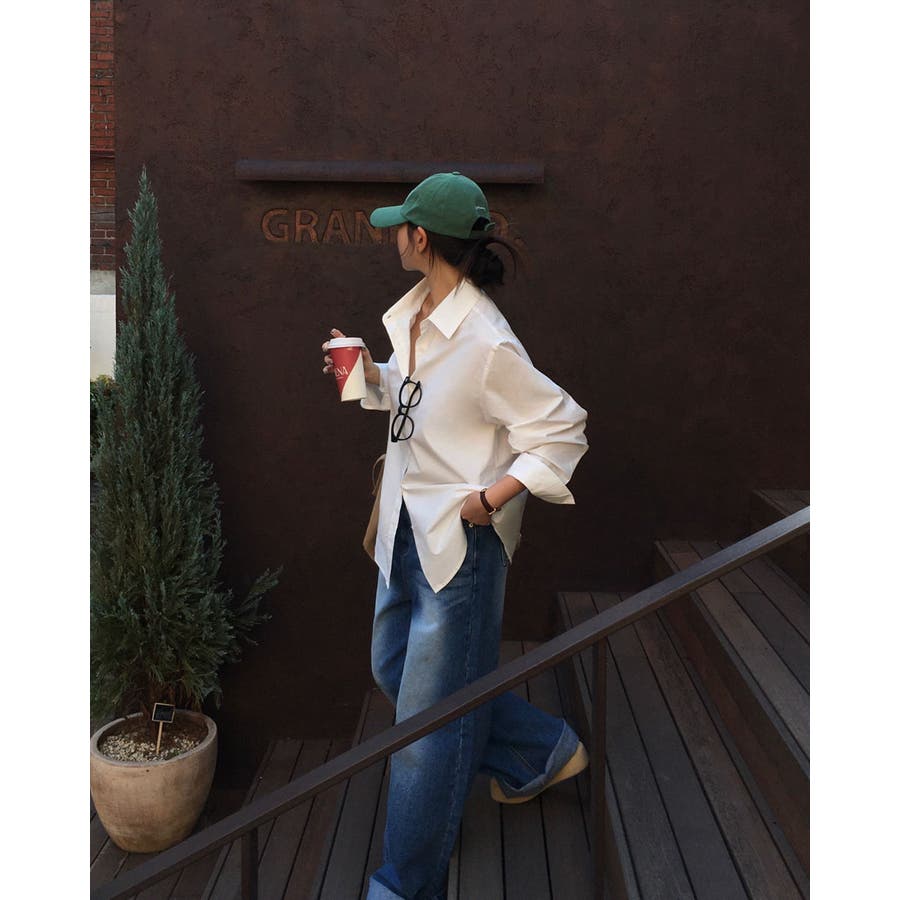 デニムパンツにシャツ一枚だけ着てもオシャレなコーデで