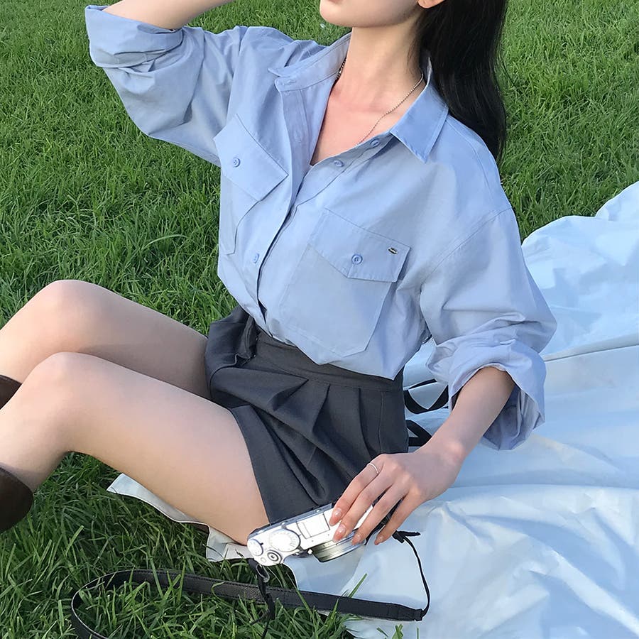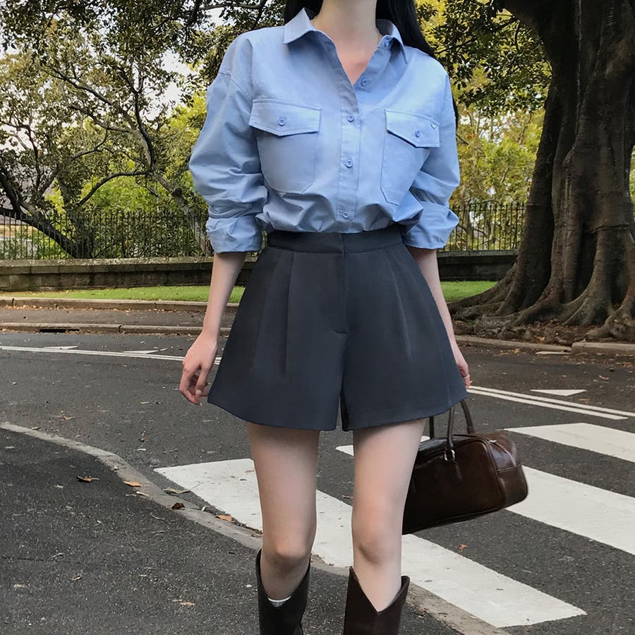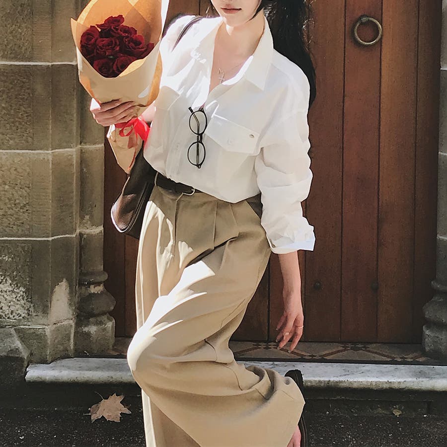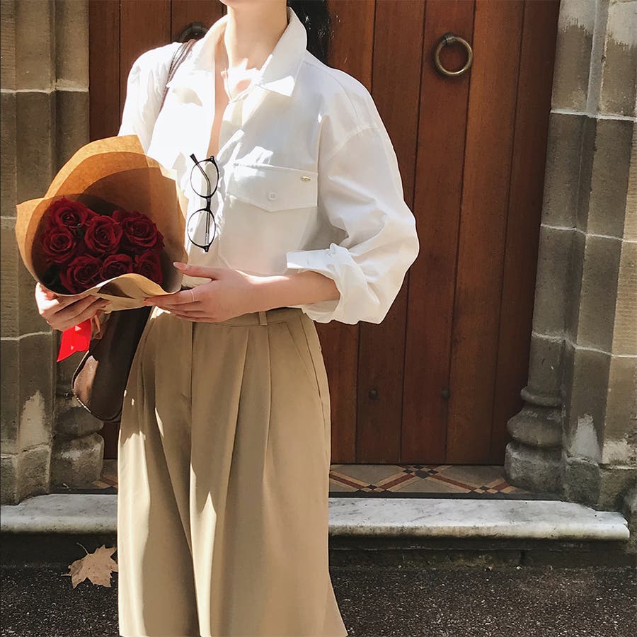 すっきりとしたカラーネックのデザインでシャツのベーシックさは維持しながらも