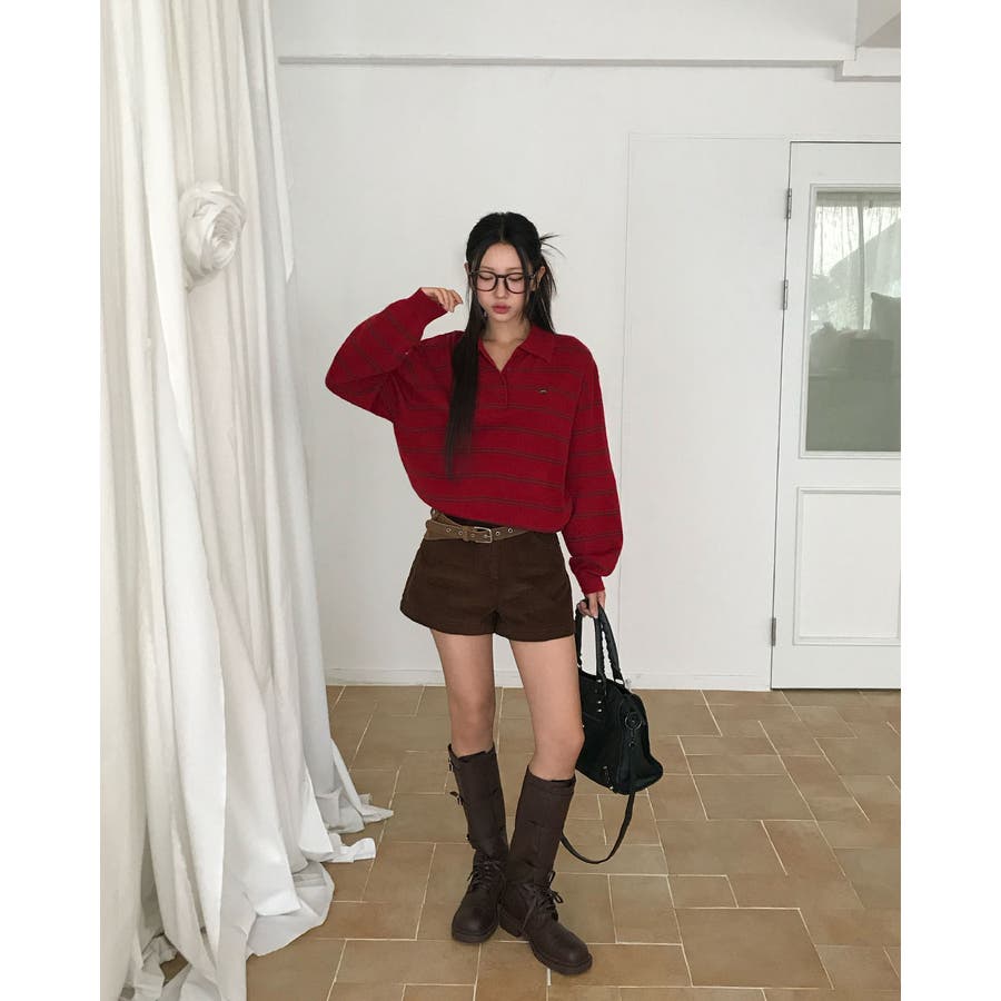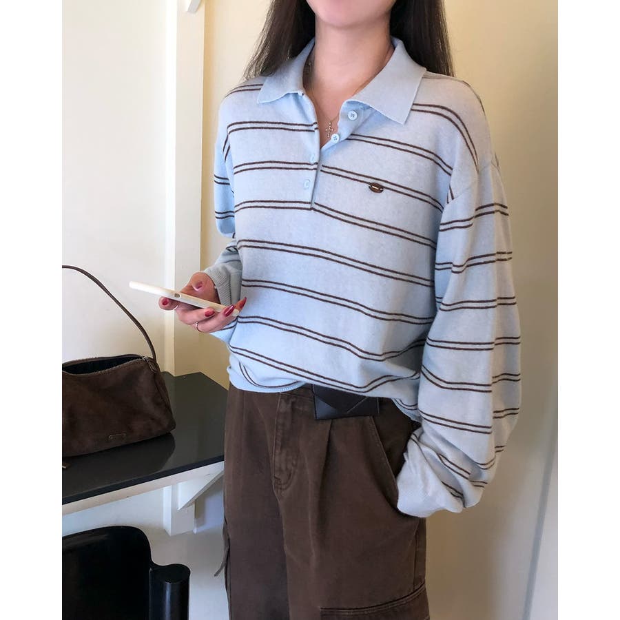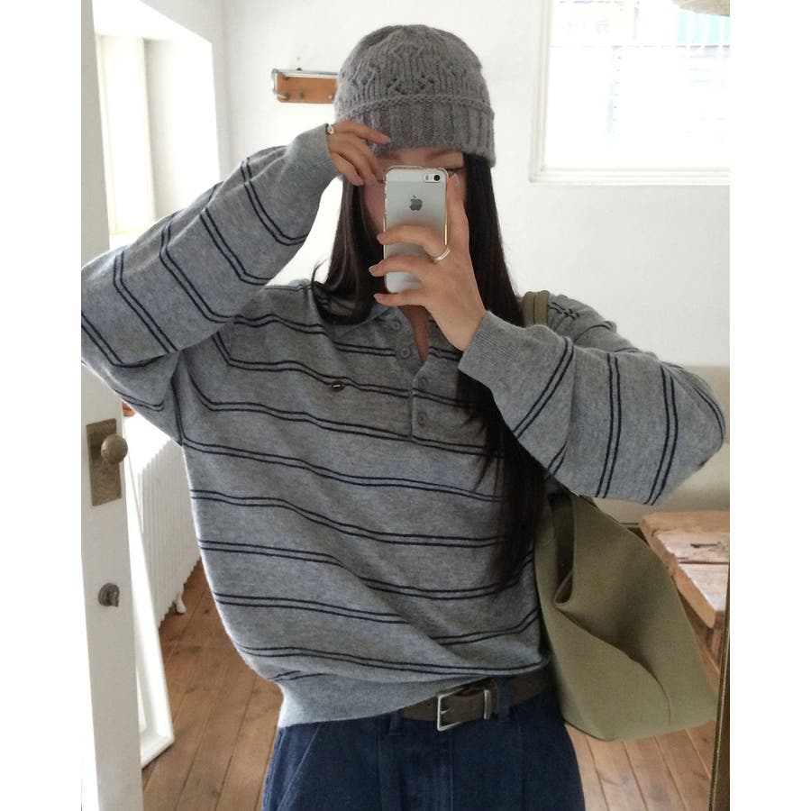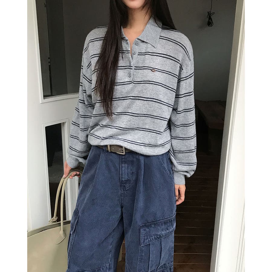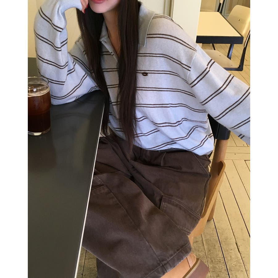 ダブルストライプ襟付きニット nt1309