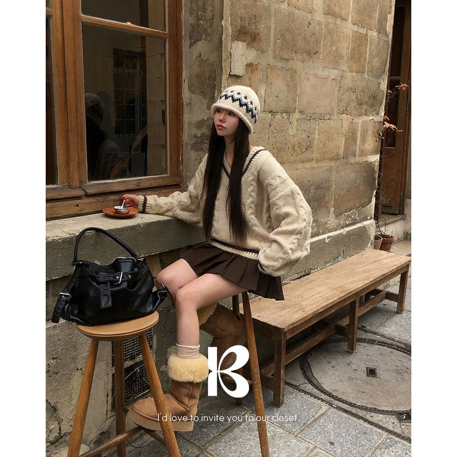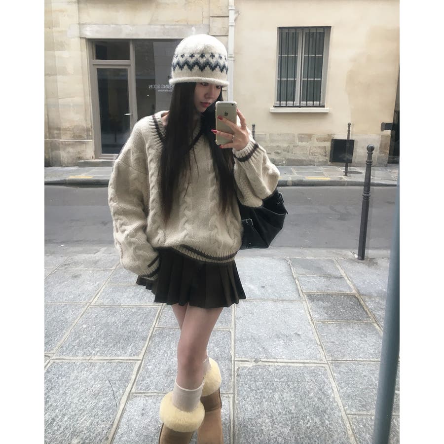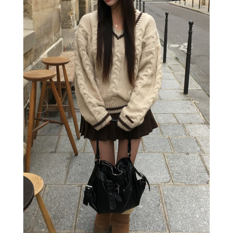 バゲット ケーブル オーバーフィット Vネック ニット nt1310