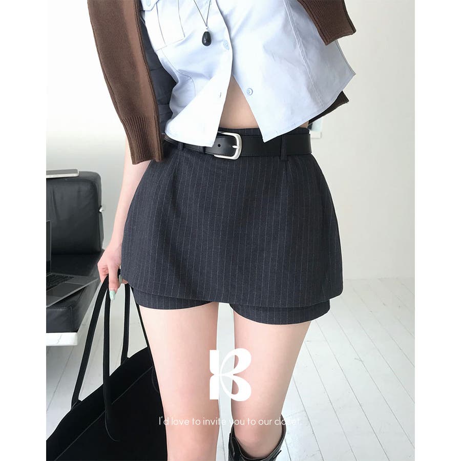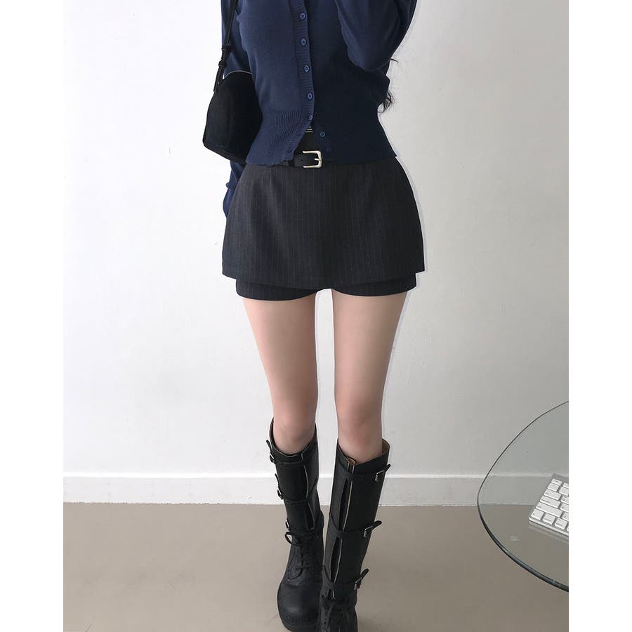メガ ストライプレイヤードスカートパンツ sk1160