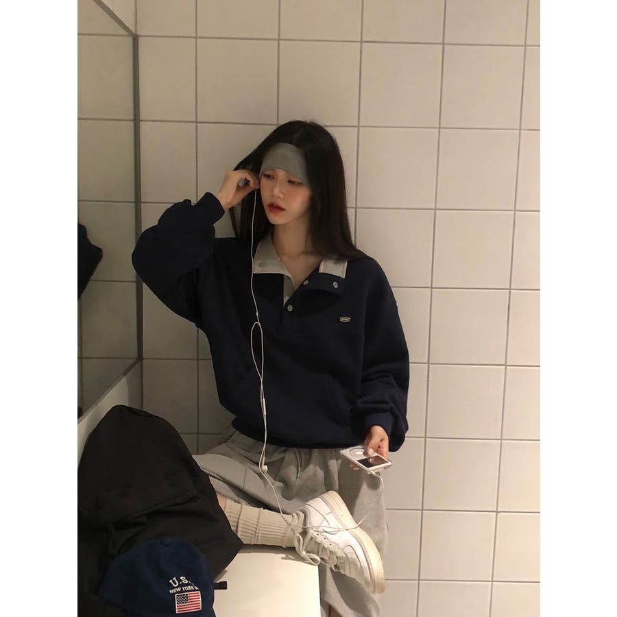 ルーズフィット配色プラケットトレーナー ts1374