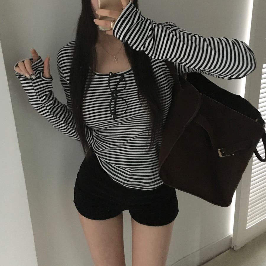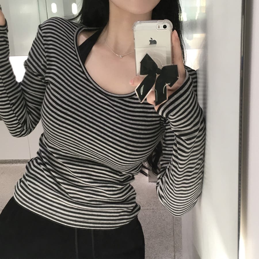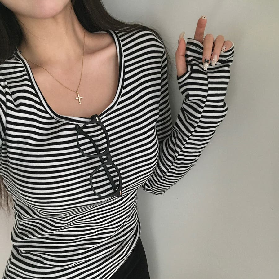 クッキー、ストライプフィンガーホールTシャツ ts1384