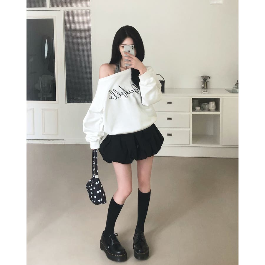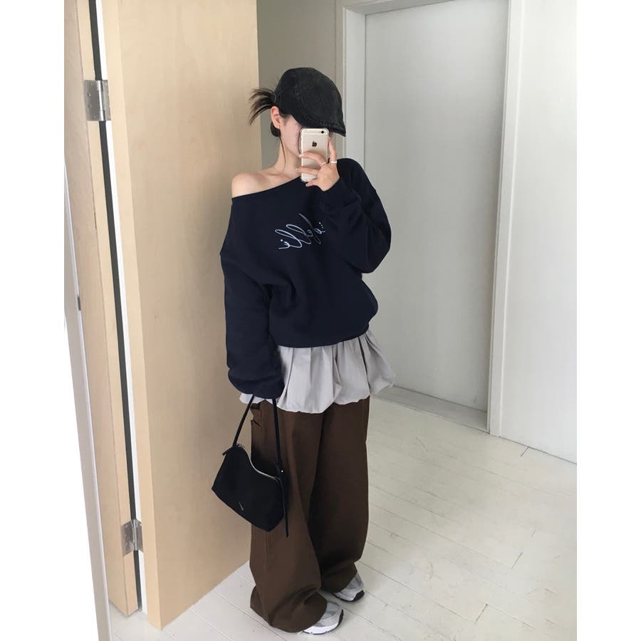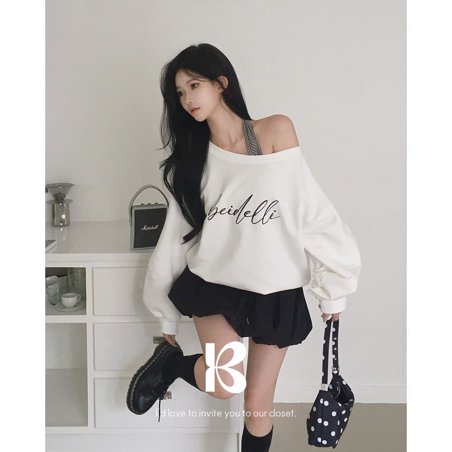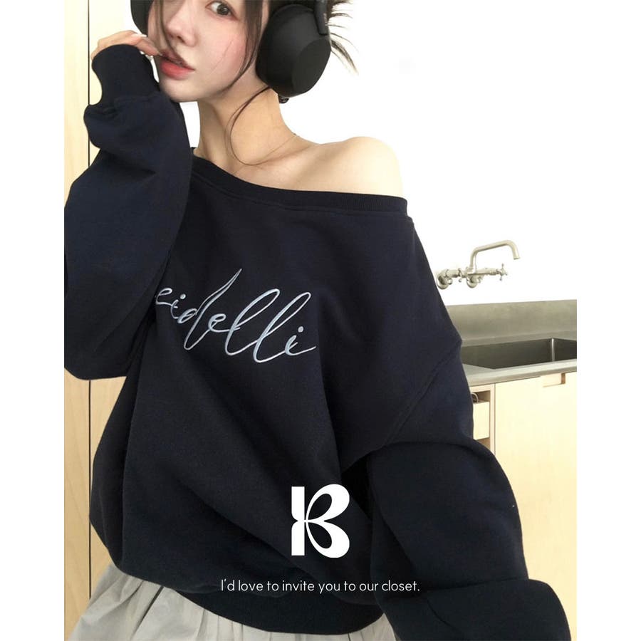 カリー、オフショルダーレタリングスウェット ts1437