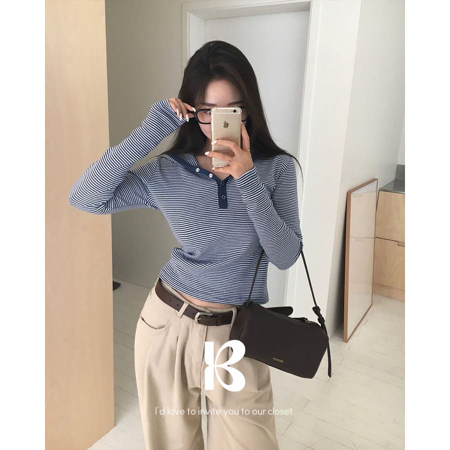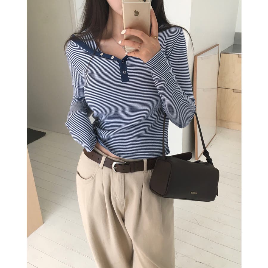 -ネックラインには深みのあるカラーを取り入れ、さりげないポイント。