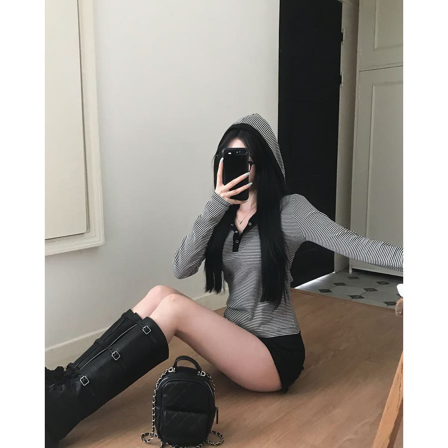 -ユニークなアクセントになる、細めのボーダーパターン。