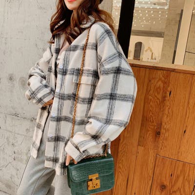 ★ シャツ カーディガン 羽織り ジャケット 韓国ファッション カジュアル きれいめ 大人っぽ 20代 30代 40代 Z世代 女性・レディース 春 秋 冬 オーバーサイズ ゆったり ドロップショルダー 長袖 くすみカラー モノトーン 総柄 チェック柄