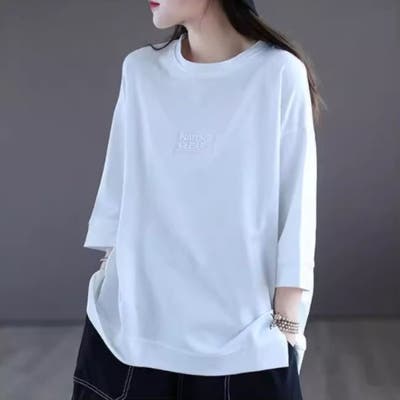 ★ Tシャツ カットソー ストリートファッション カジュアル シンプル ボーイッシュ 10代 20代 30代 Z世代 ユニセックス 春 夏 秋 オーバーサイズ 大きいサイズ ゆったり ミディ丈 ミモレ丈 アップリケ 半袖 5分袖・7分袖 クルーネック ビビッドカラー モノトーン 無地