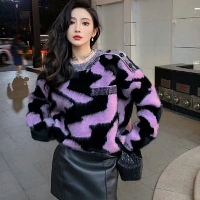 ★ プルオーバー ニット・セーター 韓国ファッション カジュアル 大人っぽ ギャル 10代 20代 30代 Z世代 女性・レディース 春 秋 冬 あったかい オーバーサイズ ゆったり ルーズ もこもこ 長袖 クルーネック ボーダー モノトーン 総柄 カモフラ・迷彩 ニット
