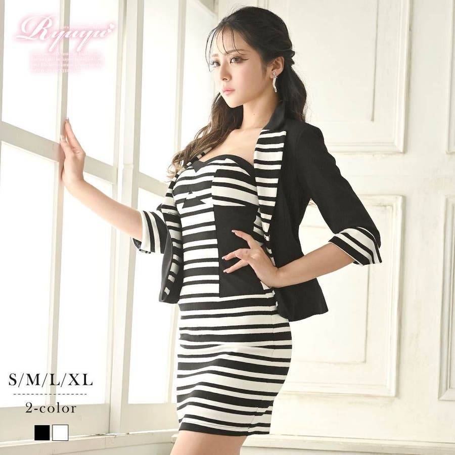 ☆モノトーンカラー×ボーダー柄が品のある女性らしさを演出するキャバスーツです。