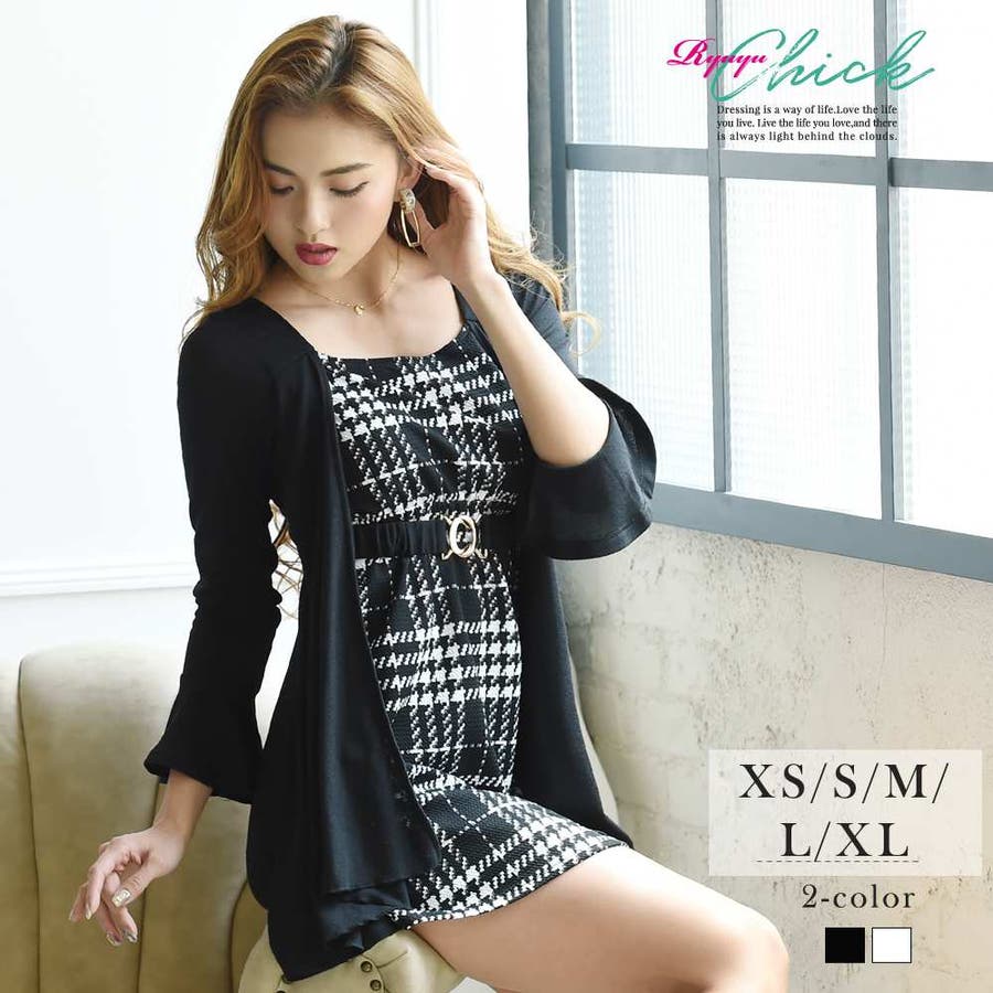 ☆カーディガンを羽織った様なレイヤード風デザインがお洒落なチェック柄ワンピースはキャバ嬢さんの私服にも♪