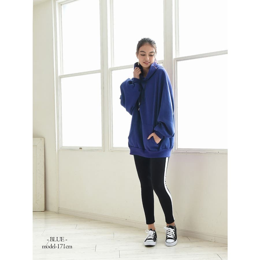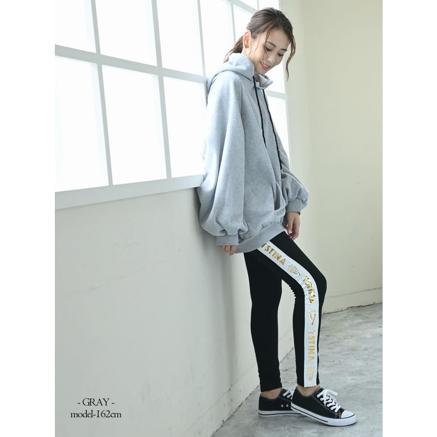 ☆今の季節にぴったりの裏起毛なので暖かな着心地のスエットパーカーはトレンドのサイドラインレギンスをあわせてスポーティースタイルにも♪