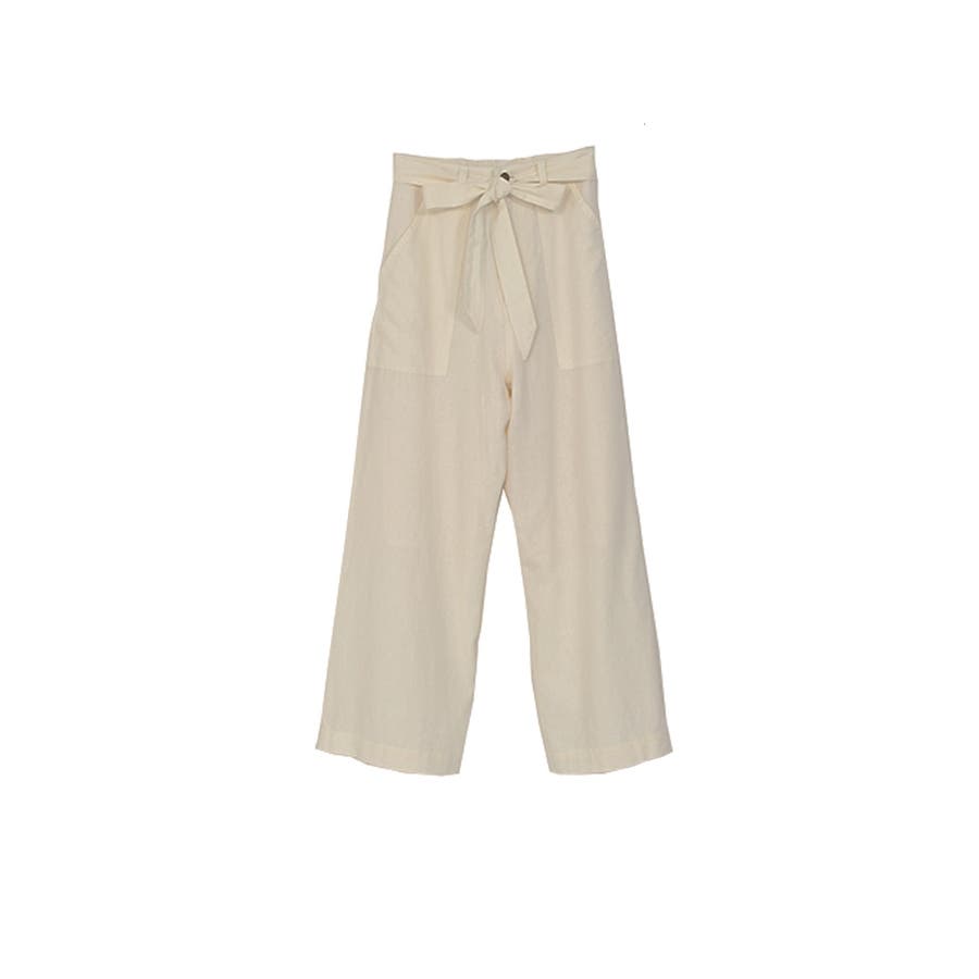 ☆ウエストリボンがコーデのアクセントになるリネンパンツはフロントに変化を持たせることでこなれ感のある着こなしが叶うロングパンツ♪