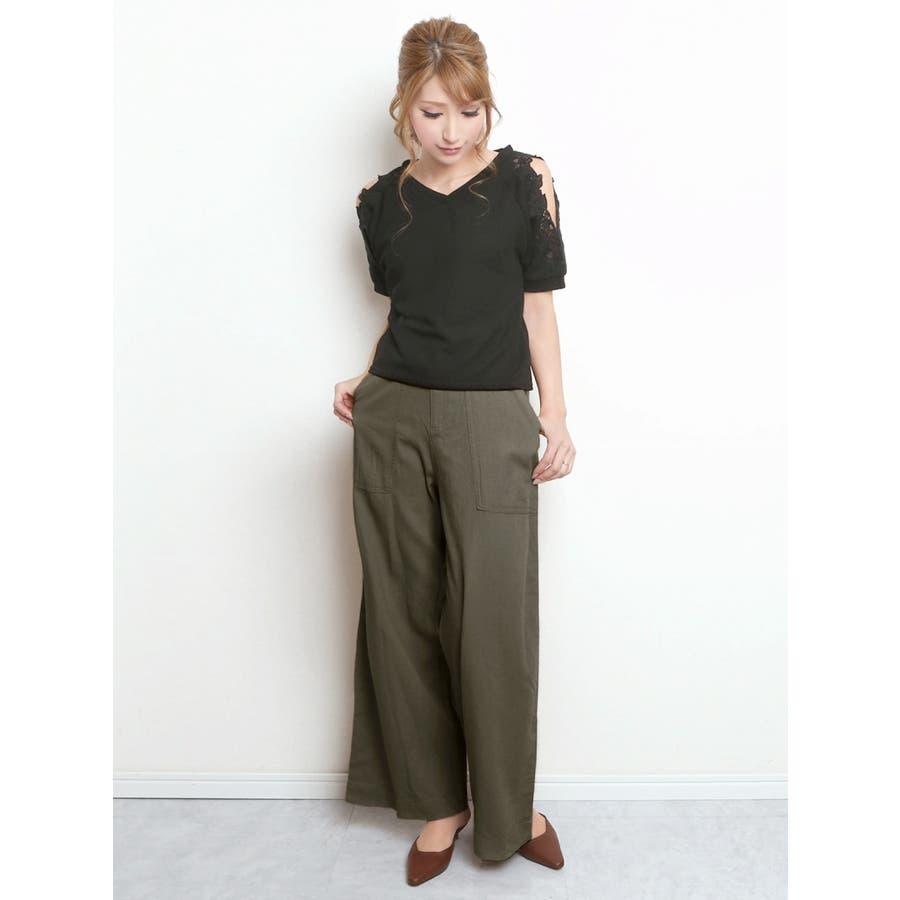 ☆シーズンライクに仕上げたリネン風ワイドパンツはさらりとした肌触りの涼しげな雰囲気を演出してくれるワイドパンツ♪