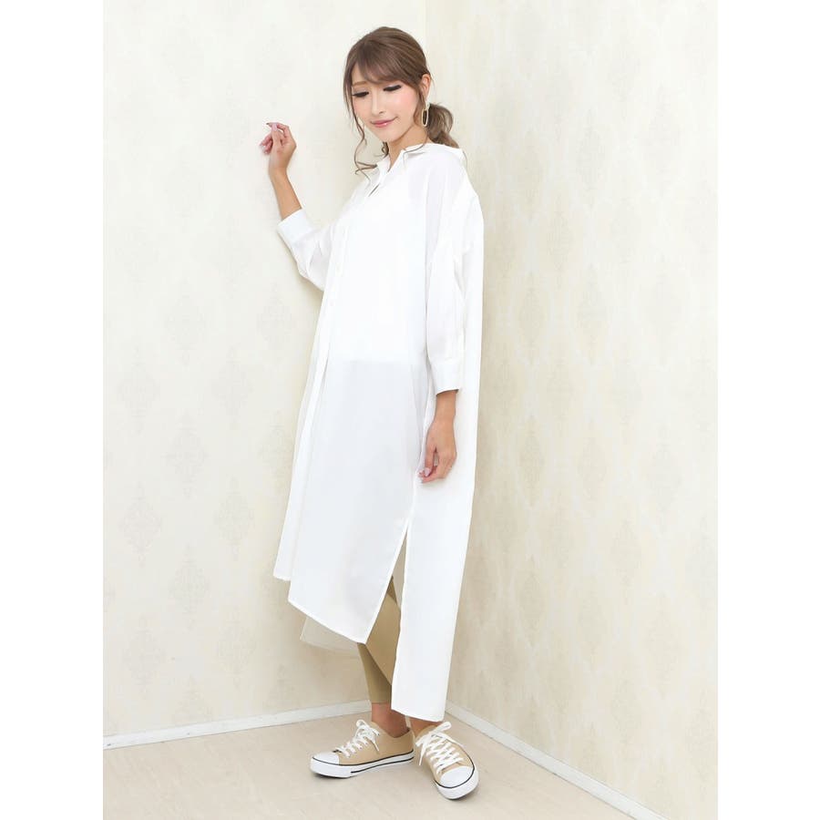☆王道のロングシャツワンピはパンツ合わせでカジュアルコーデも相性◎な襟付きワンピース♪