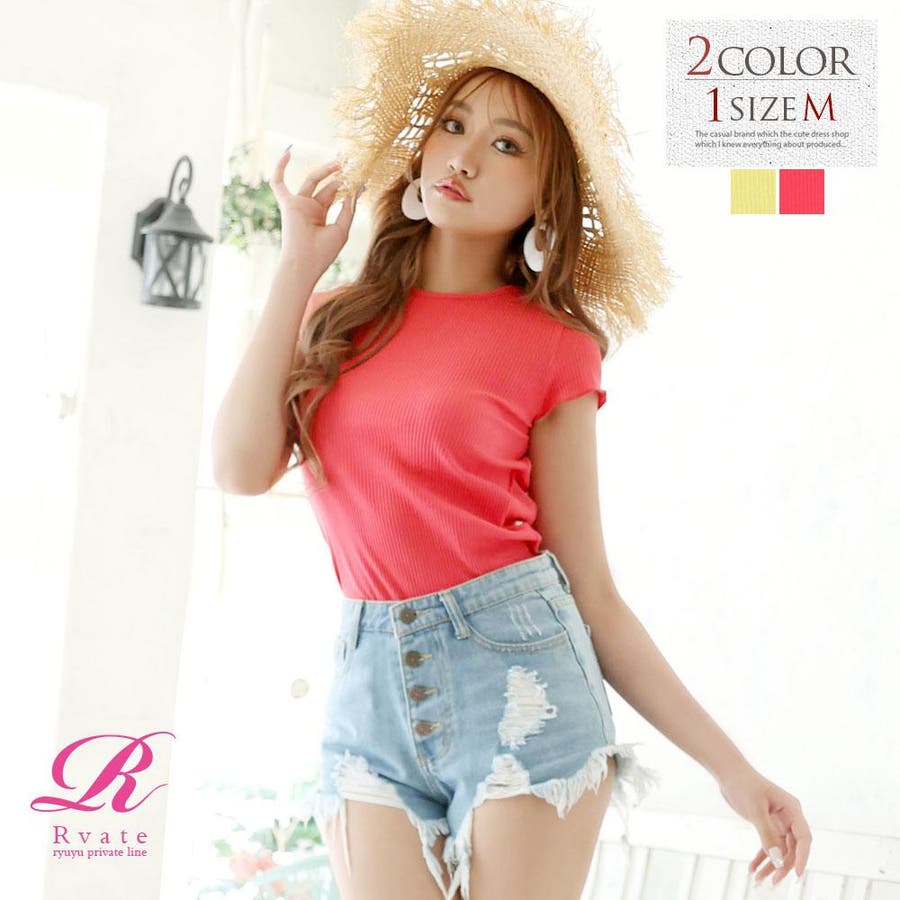 Tシャツ カットソー 半袖 リブ 無地 白 メロウ 綿 ラウンドネック トップス トップス キャバTシャツ イエロー ピンク カップ付き カットソー シャツブラウス チュニック ニット セーター カーディガン トレーナー パーカー ポロシャツ デニムシャツ ビスチェ ベスト ジレ タンクトップ ノースリーブ キャミソール チューブトップ ベアトップ カジュアル