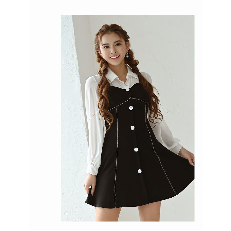 ☆ブラウス+キャミワンピのレイヤード風キャバワンピはブラウス部分のボタンを開けてぬけ感、閉めてきっちり感を演出できちゃうドール風キャバクラドレス♪
