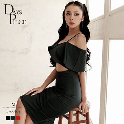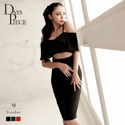 ☆色気あるボディラインに魅せてくれるフィット感が魅力的なタイトドレスにはお腹をチラ見せできちゃうカットデザインが施されておりさり気なくセクシーさもアピールできるオフショルドレスです♪