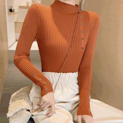 | 素材 | リブニットインナーニットカットソー長袖春秋冬新作ハイネックタイトジャストサイズプルオーバー ニットトップス モックネック韓国ファッションカジュアル 大人かわい |