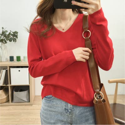素材 | ニットソー長袖 Vネック ニットソー トップス 薄く軽い Tシャツ 無地 大人気可愛い 韓国ファッション 秋冬 大きいサイズ ロンT カジュアル 薄手ニット インナーニットセーター シルエット 伸縮性あり |