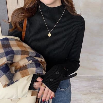 | 素材 | トップス ニット 薄手 カットソー 春新作 韓国ニット ハイネック 長袖 細見え 上品 伸縮性 生地感 裏シャギー 腕ボダン トレンドカラー セーターボトルネック インナー リブニット編 伸縮性 大人 オフィスカジュアル スプリングニット 春トップス |