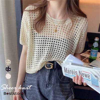 | 素材 | 透け感 カットソー 半袖 透かし編み シアーニット ショート丈 穴空き半袖 クルーネック トップス サーマニット 韓国ファッション インナー キャミソール ニットソー ベスト クールネック 夏新作 レトロチック 無地 袖なし編みシアーニット 透かし編み リブニット |