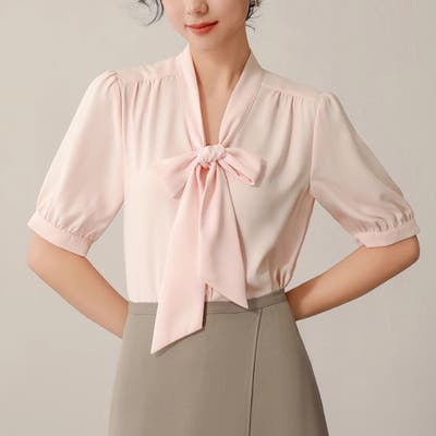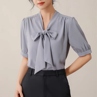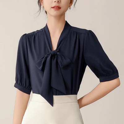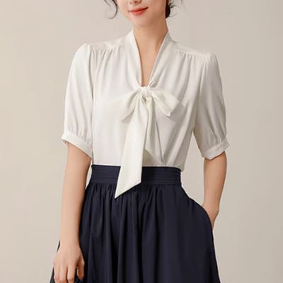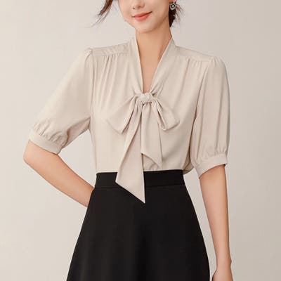 | 素材 | ボウタイリボンブラウス トップス シャツ 半袖 ブラウス オフィス カジュアル ベーシックシャツ リボン 春夏秋 五分袖 カジュアル 韓国 ベーシック きれいめ |