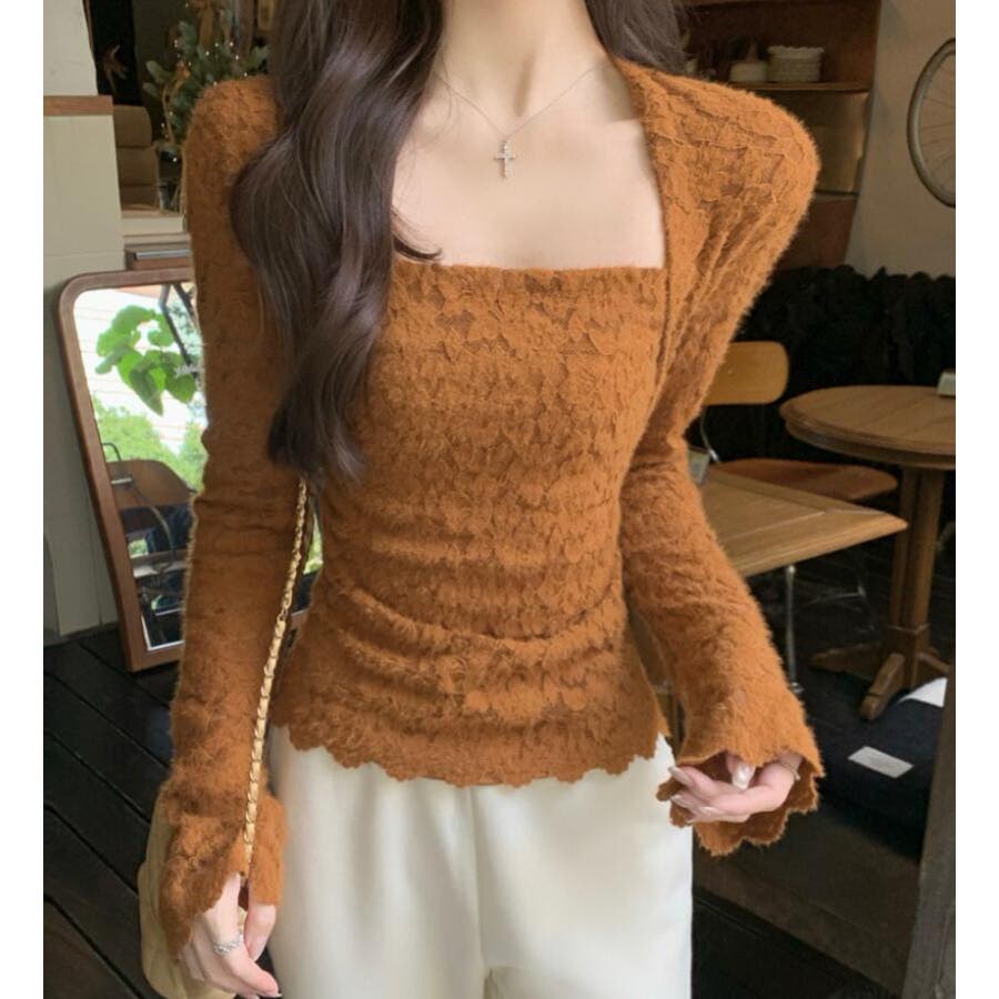 ソフトタッチ スクエアネック トップス