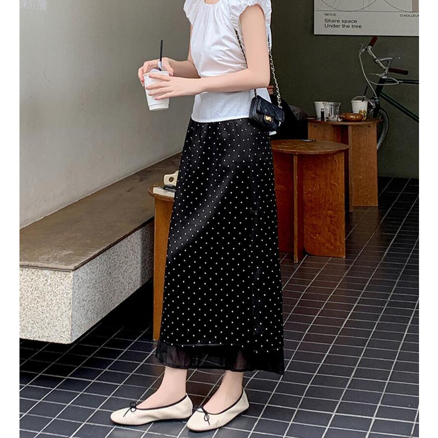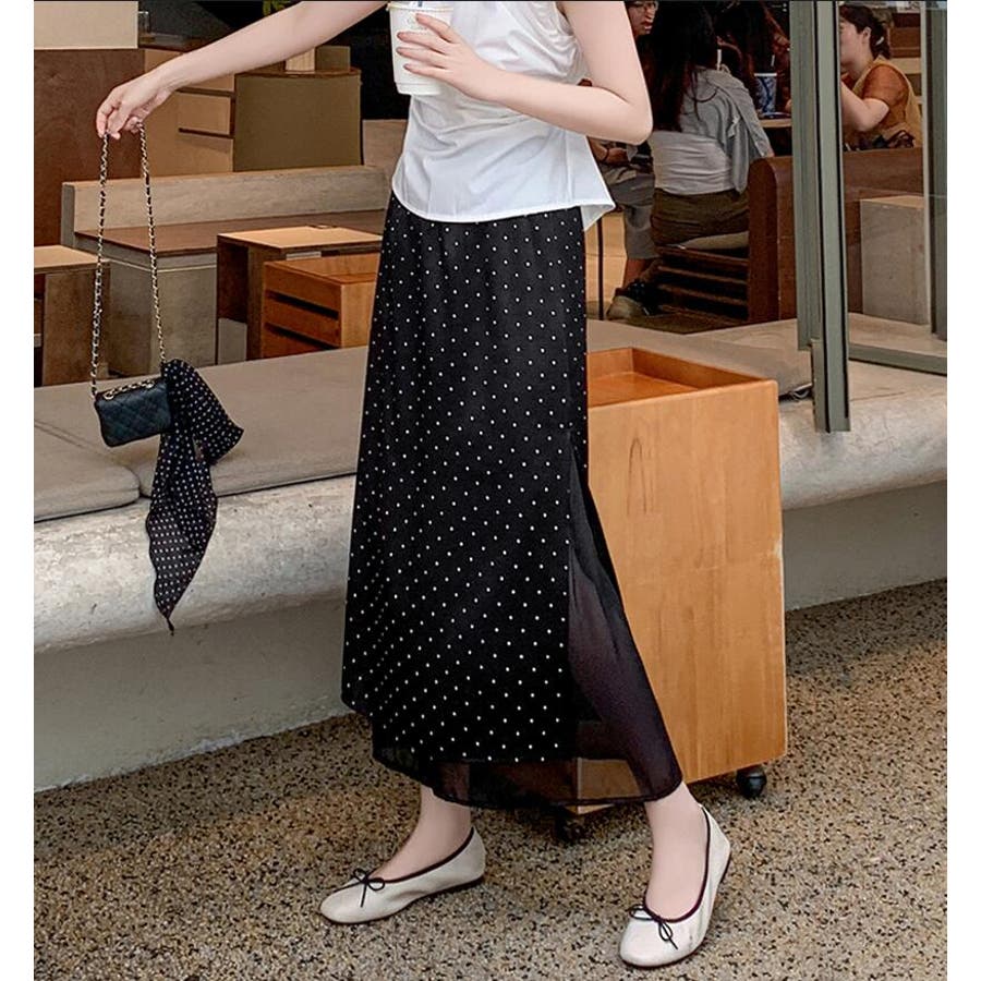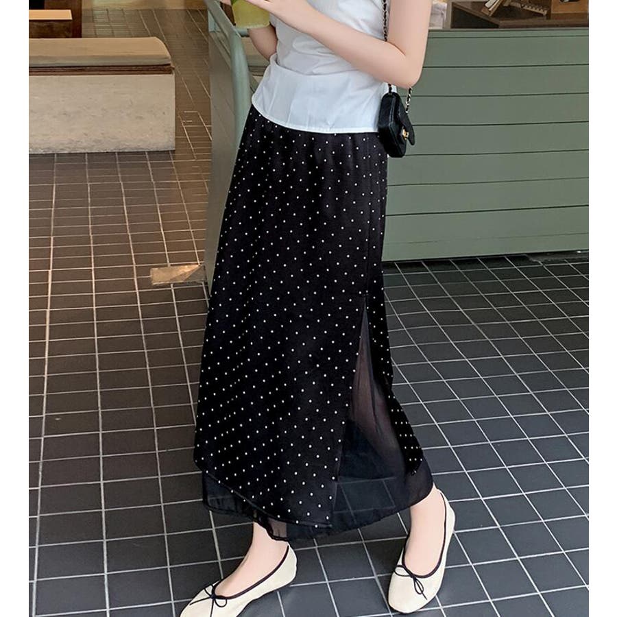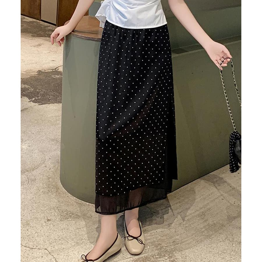 ドットプリント ロングスカート