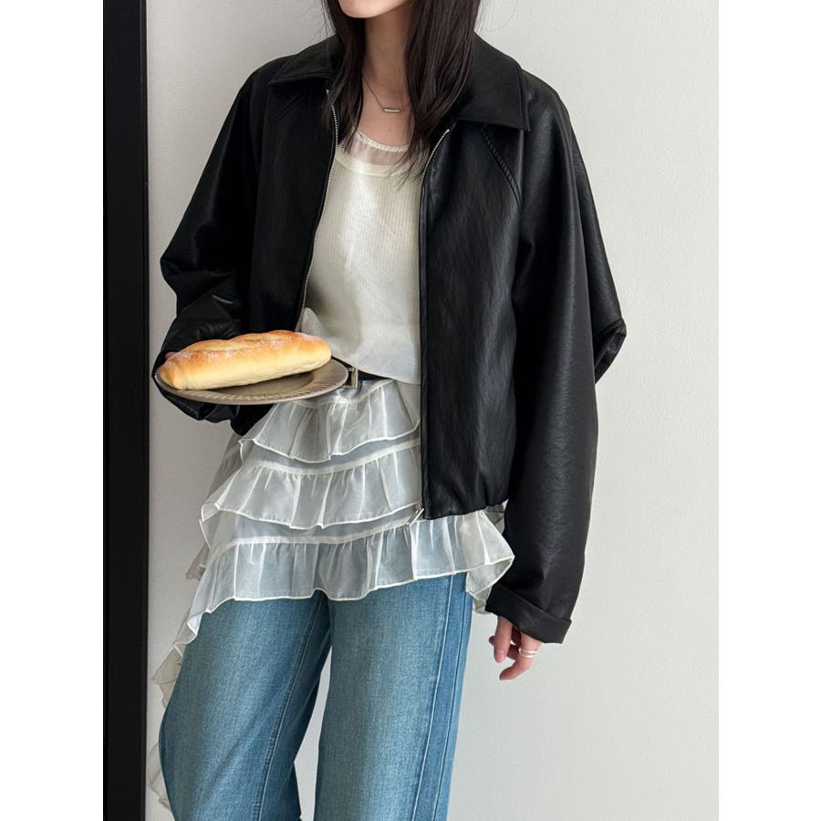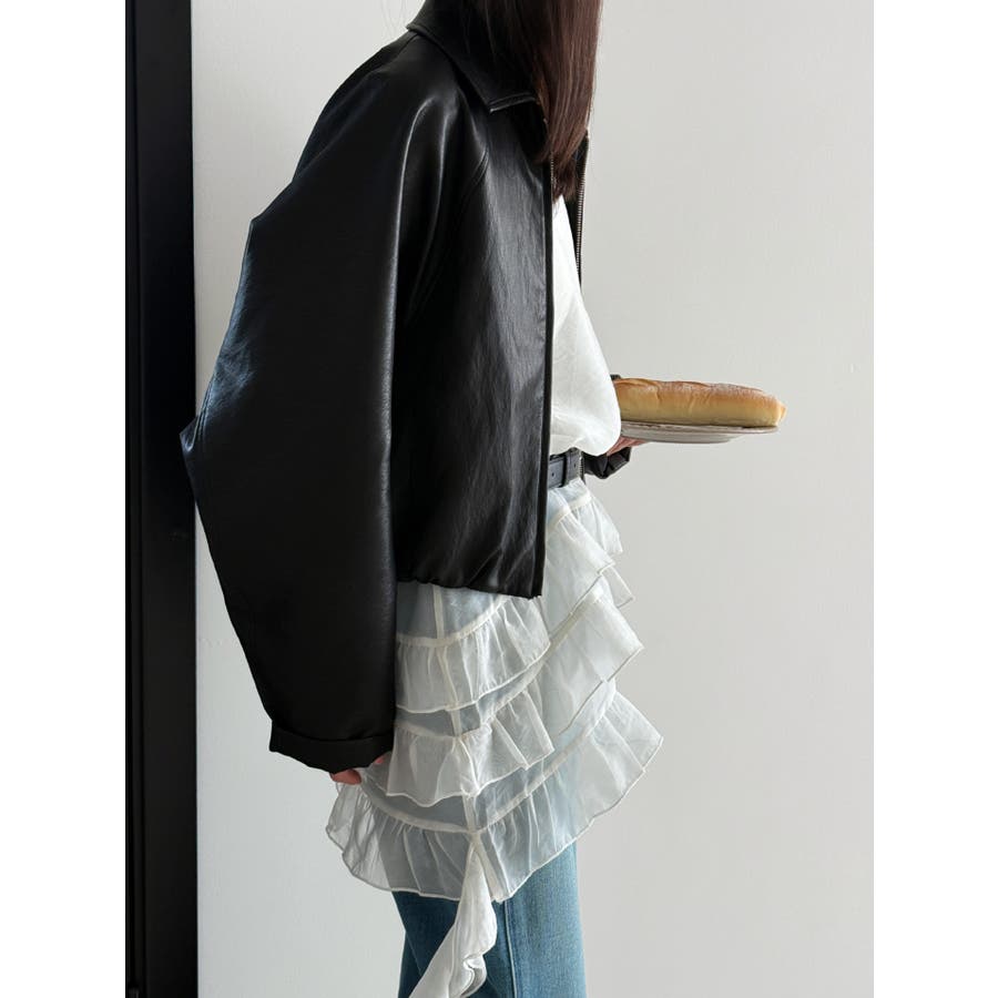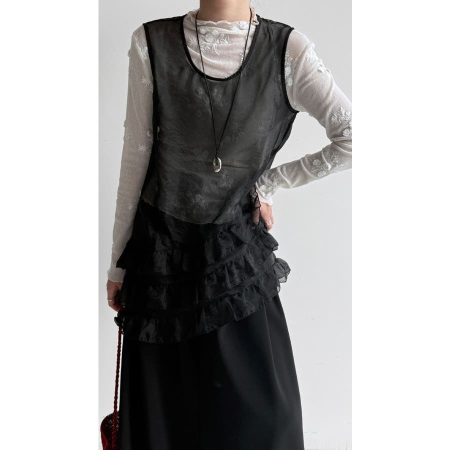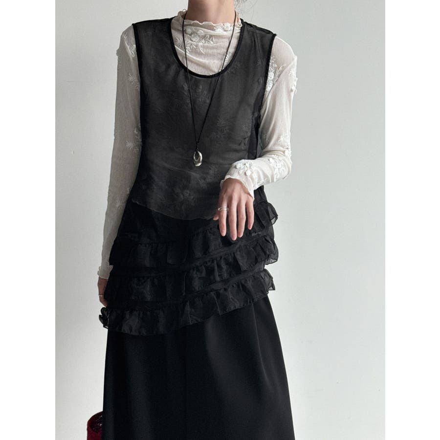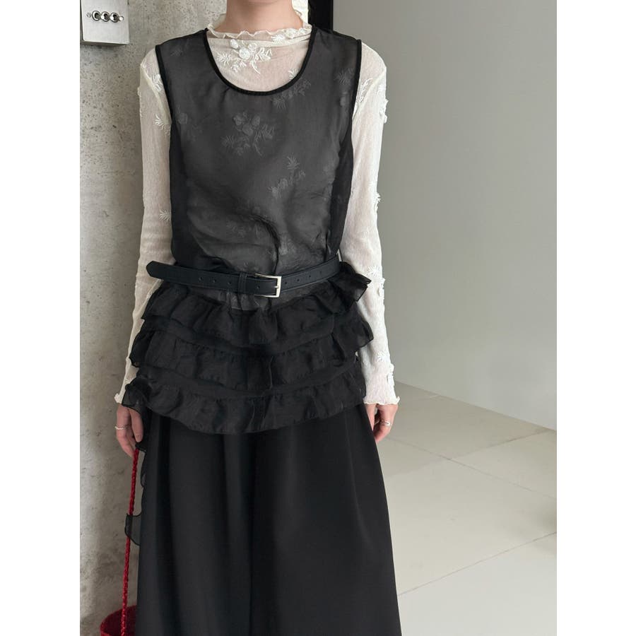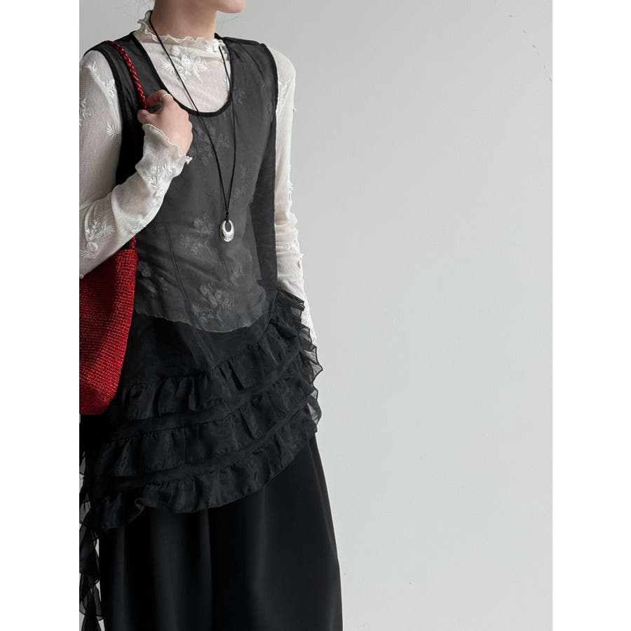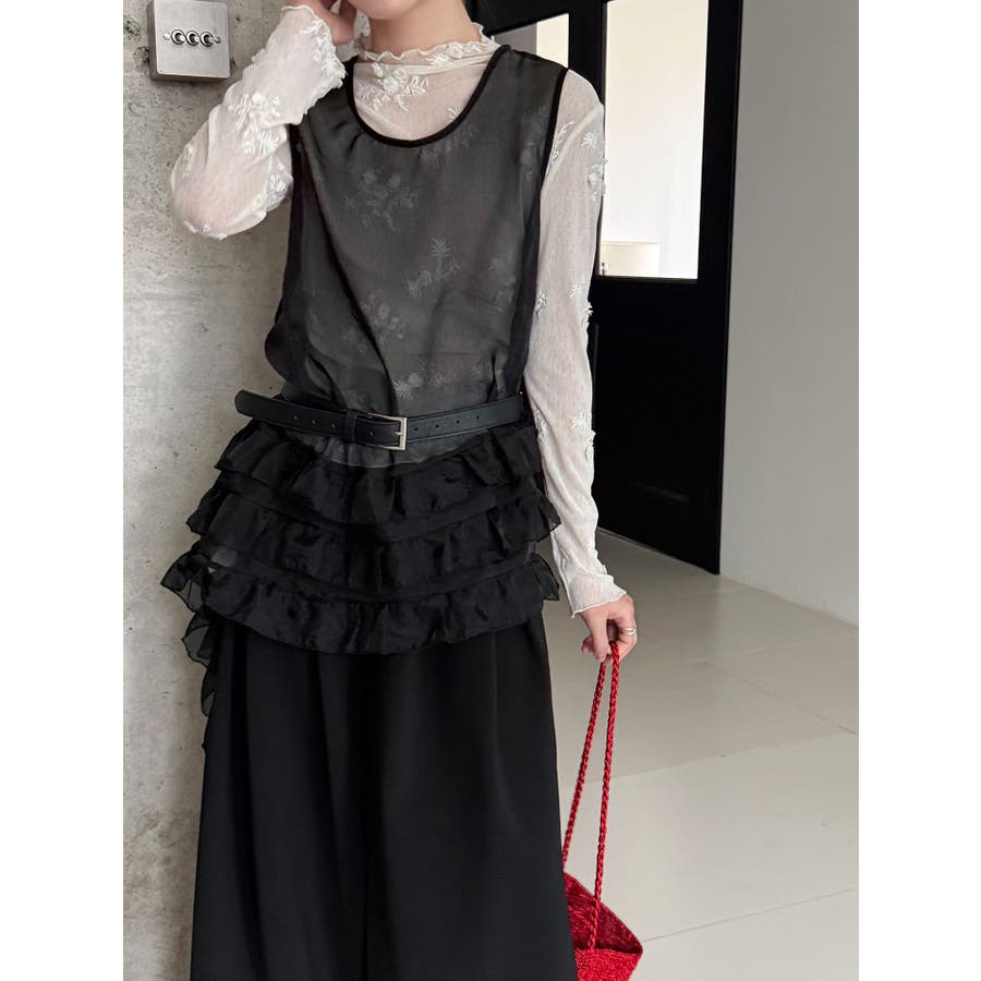 フレンチ アシメフリル ノースリーブ トップス