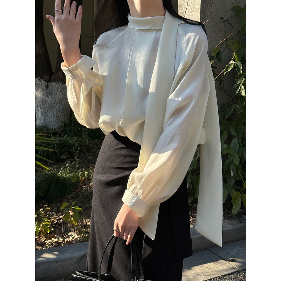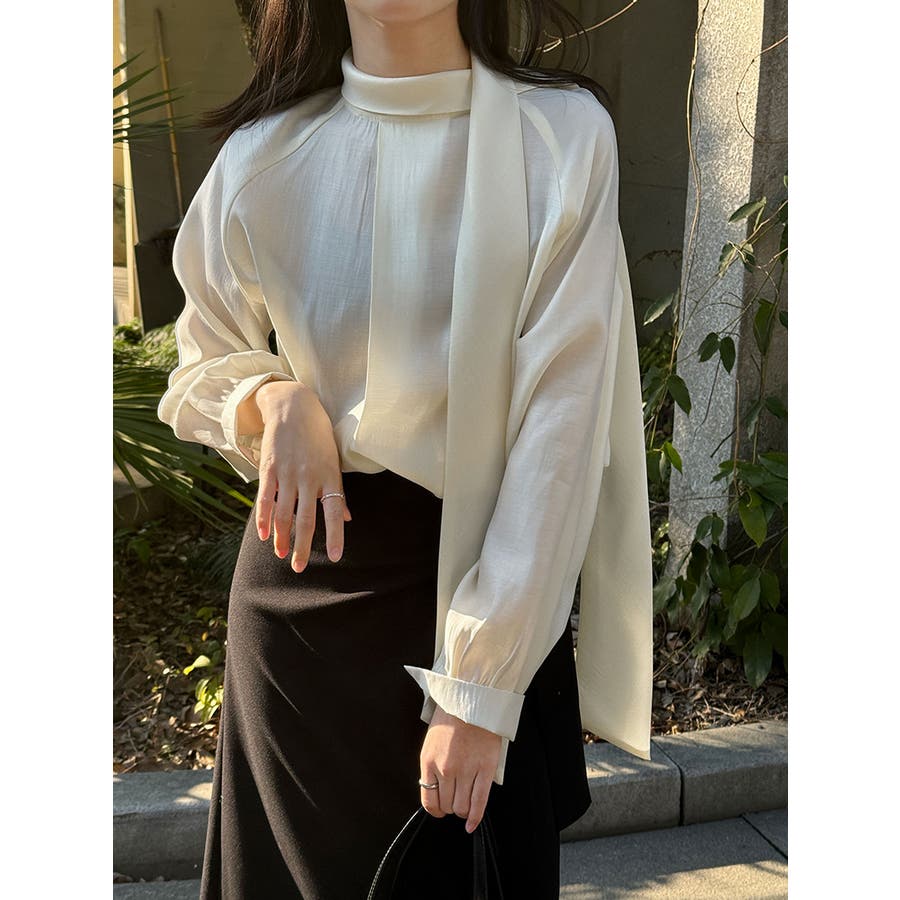 2WAY ハイネック スカーフ ブラウス