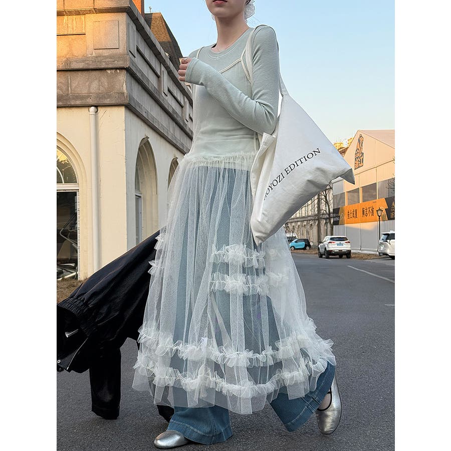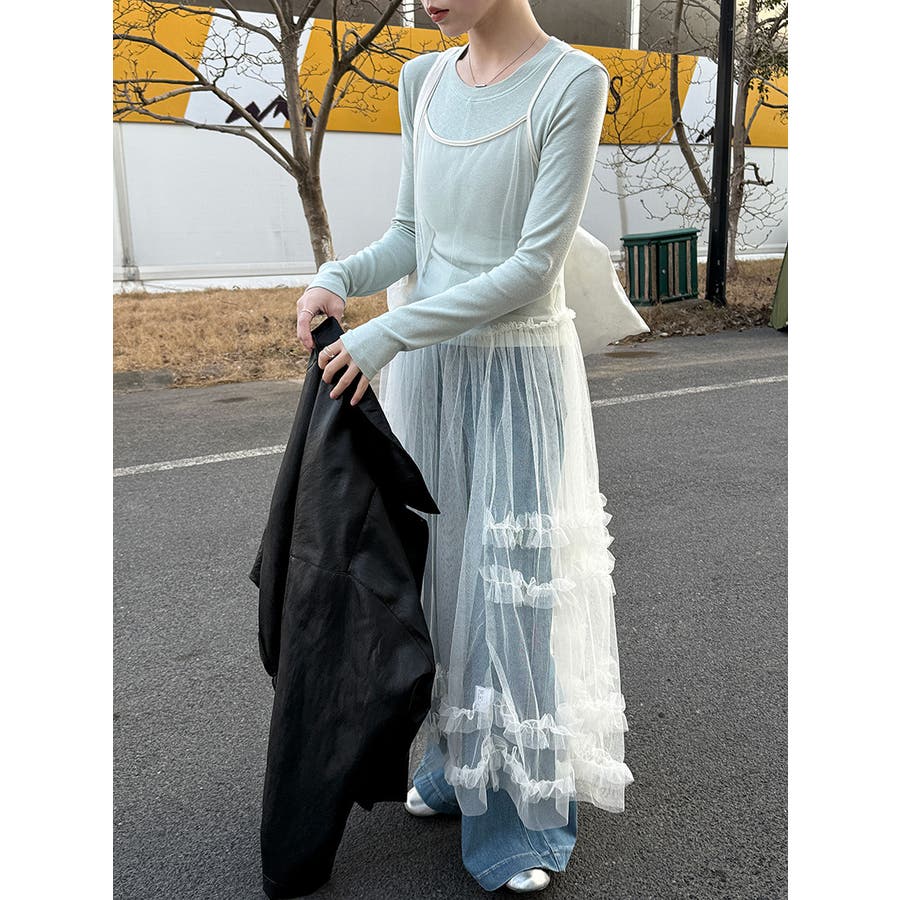 シアーチュール キャミ レース ロングワンピース