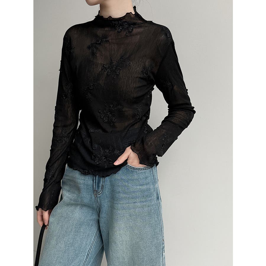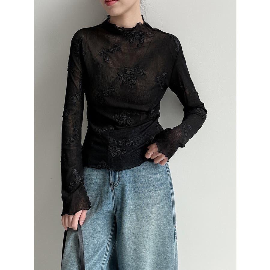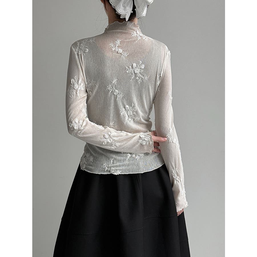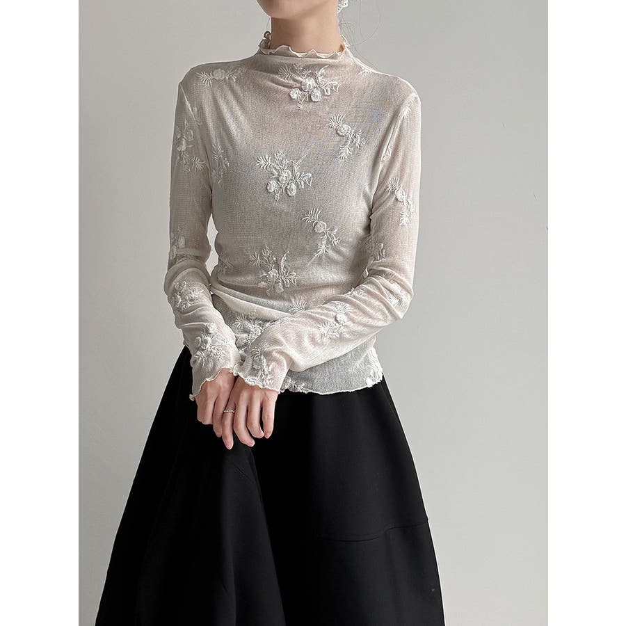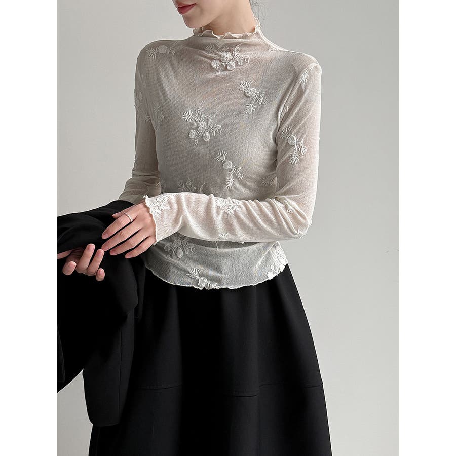 刺繍 ハイネック シアートップス
