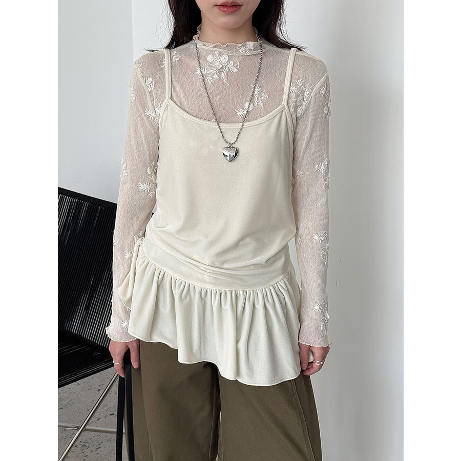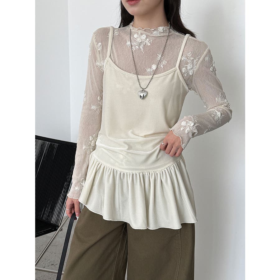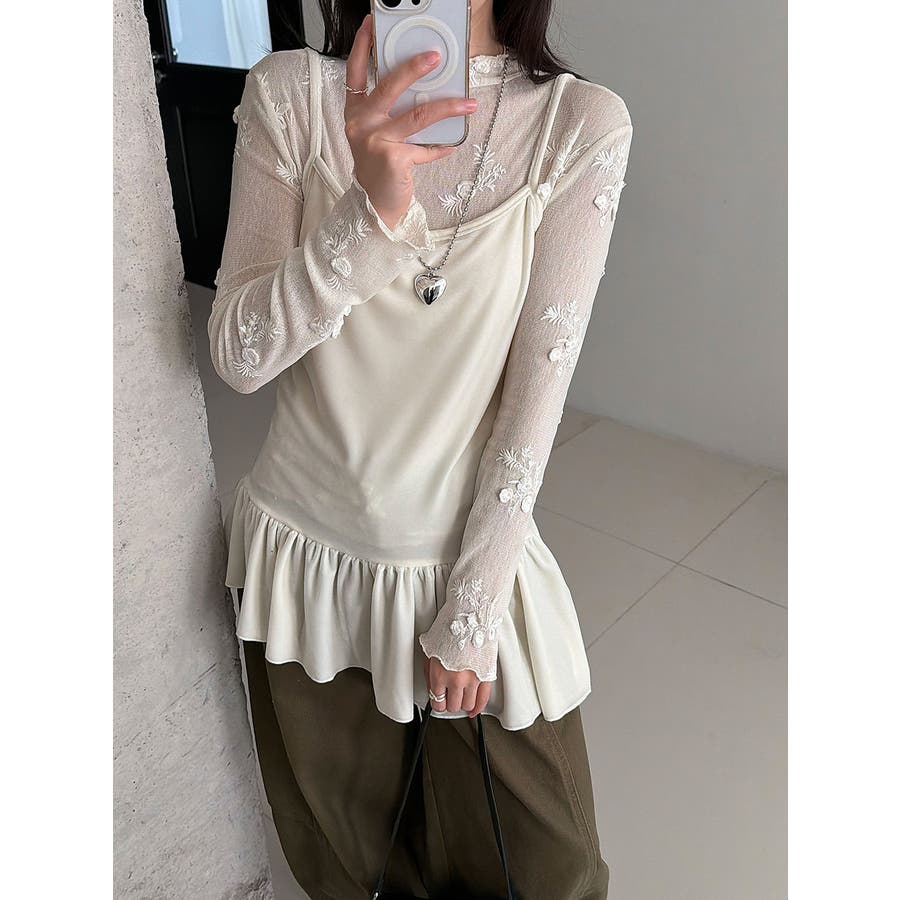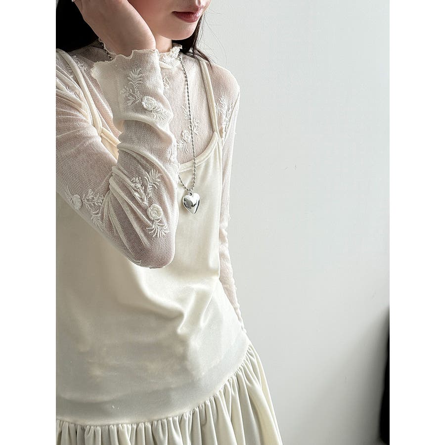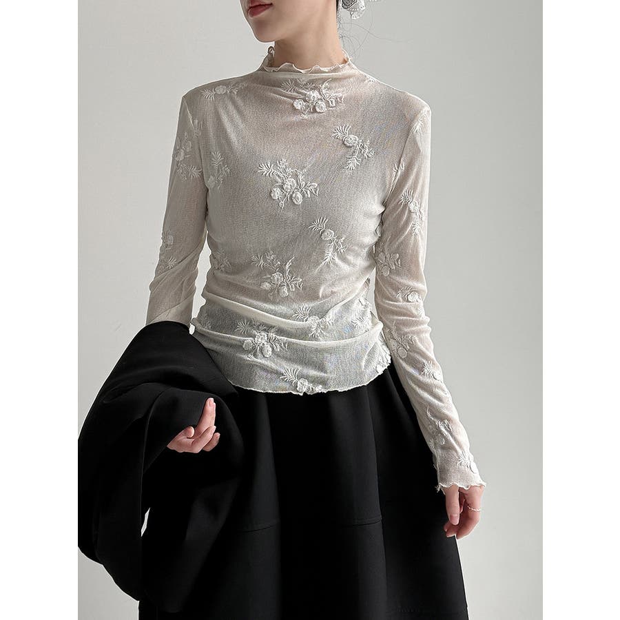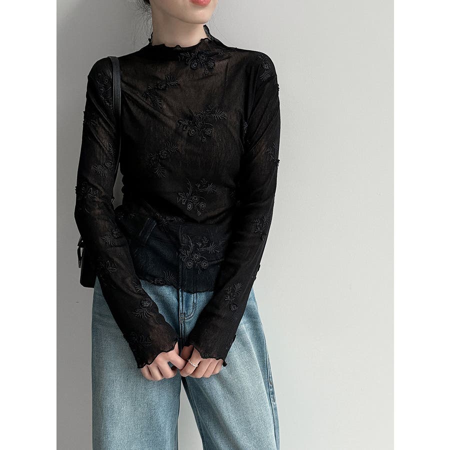 刺繍 ハイネック シアートップス