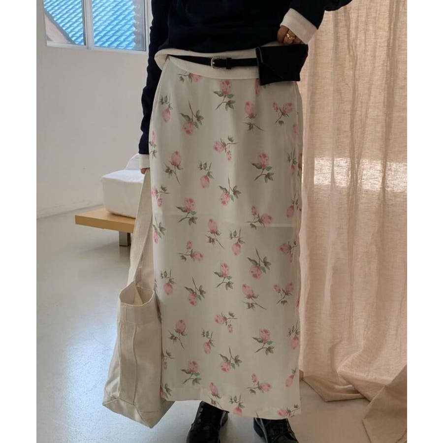フラワープリント ロングスカート