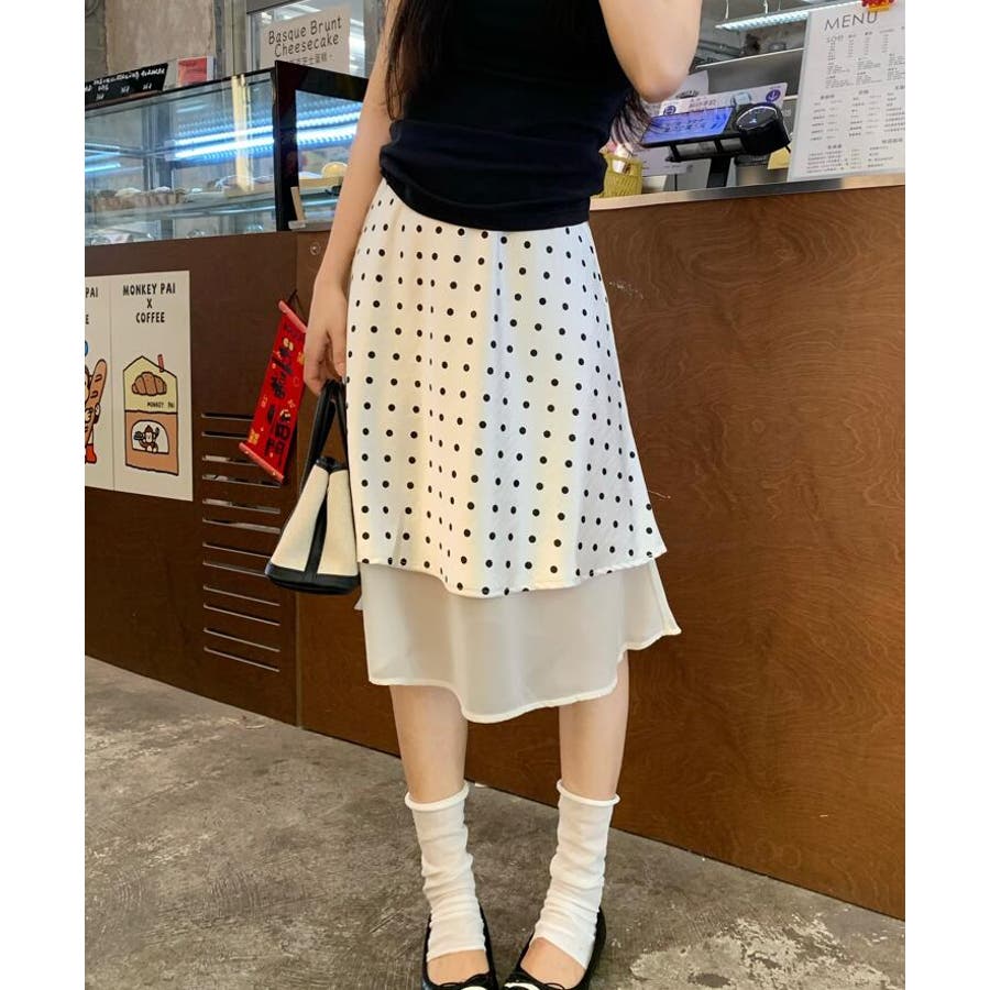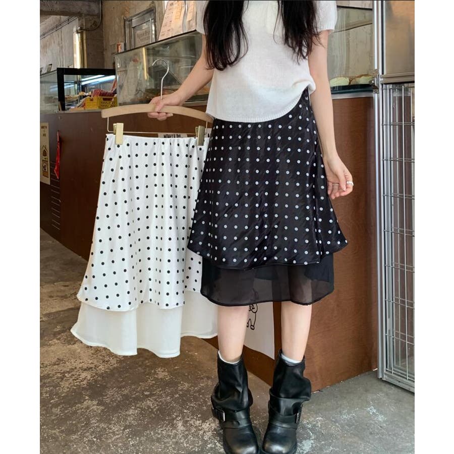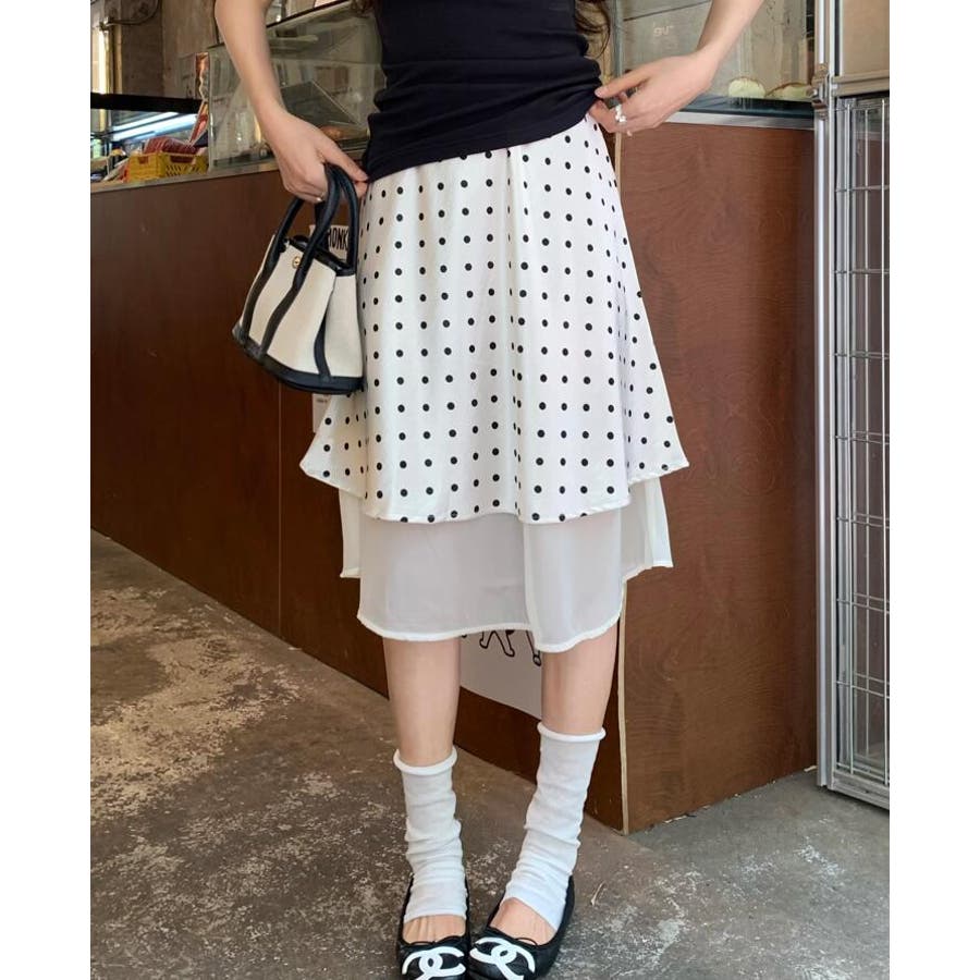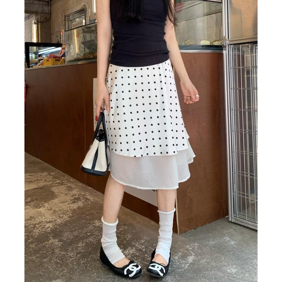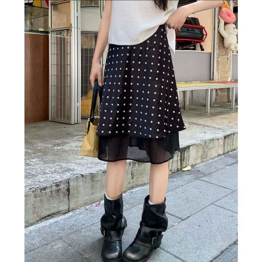 シースルー レイヤード ドットスカート