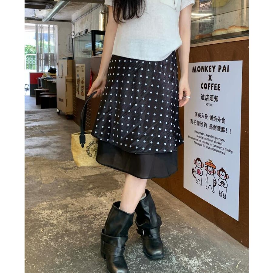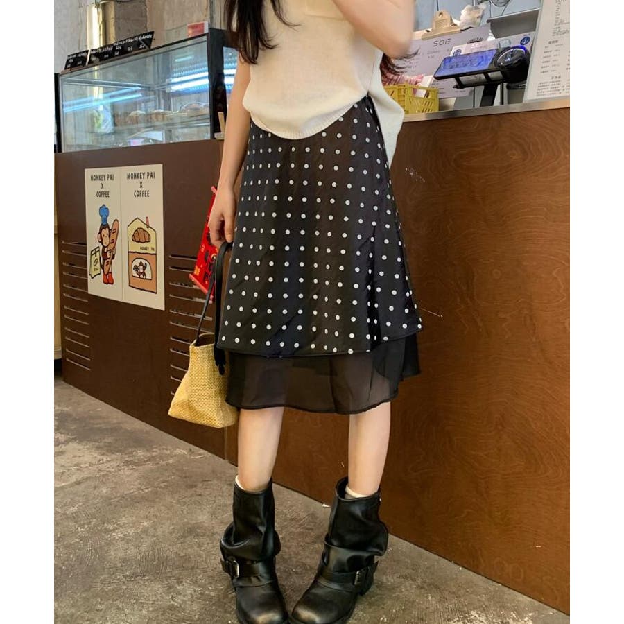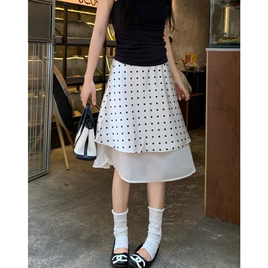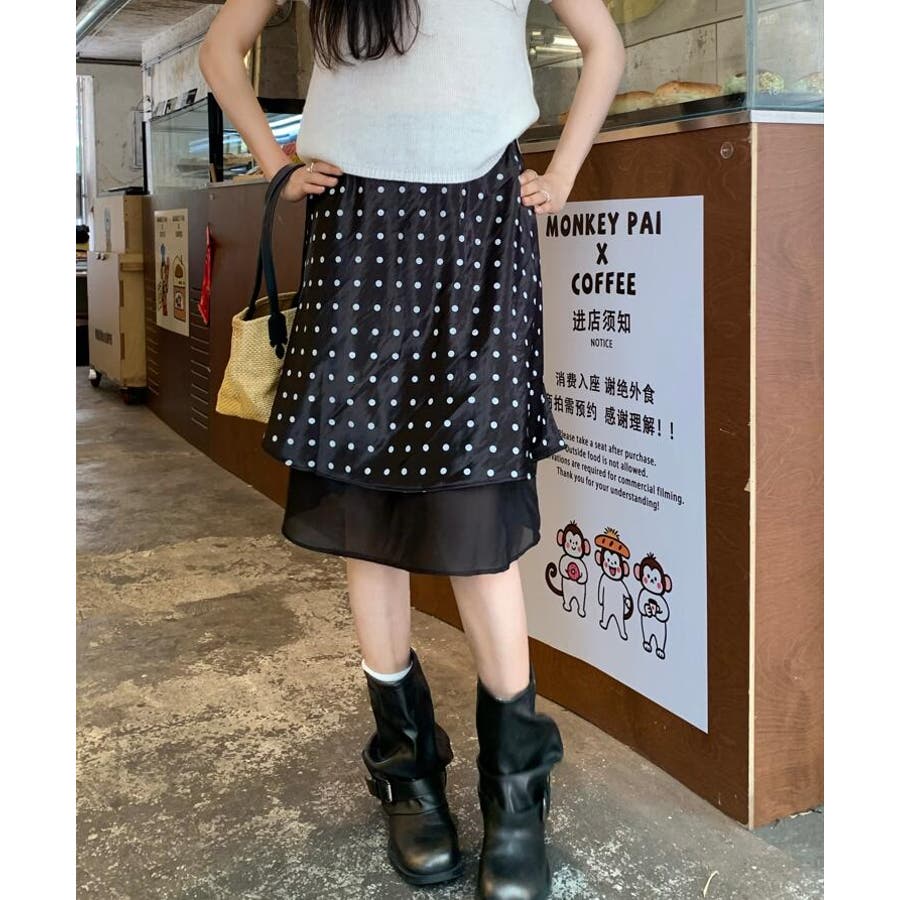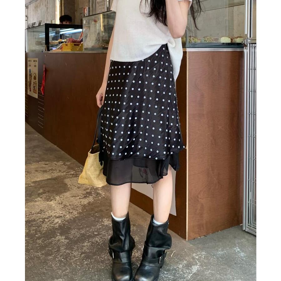 シースルー レイヤード ドットスカート