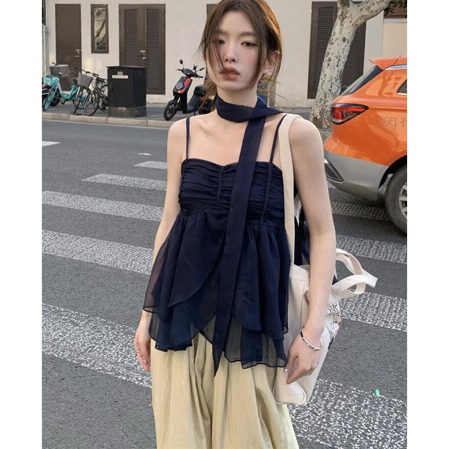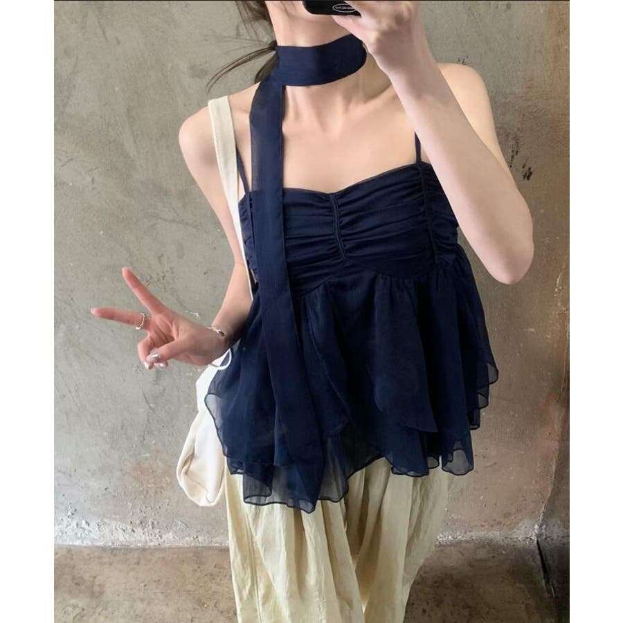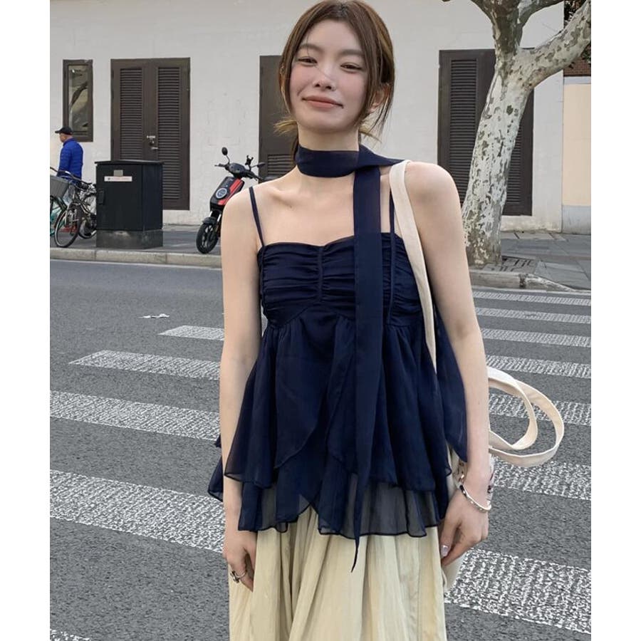チョーカーリボン ティアード キャミソール