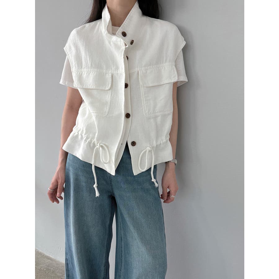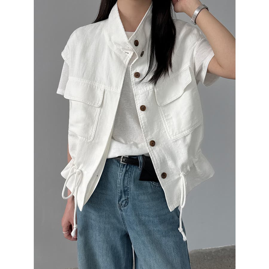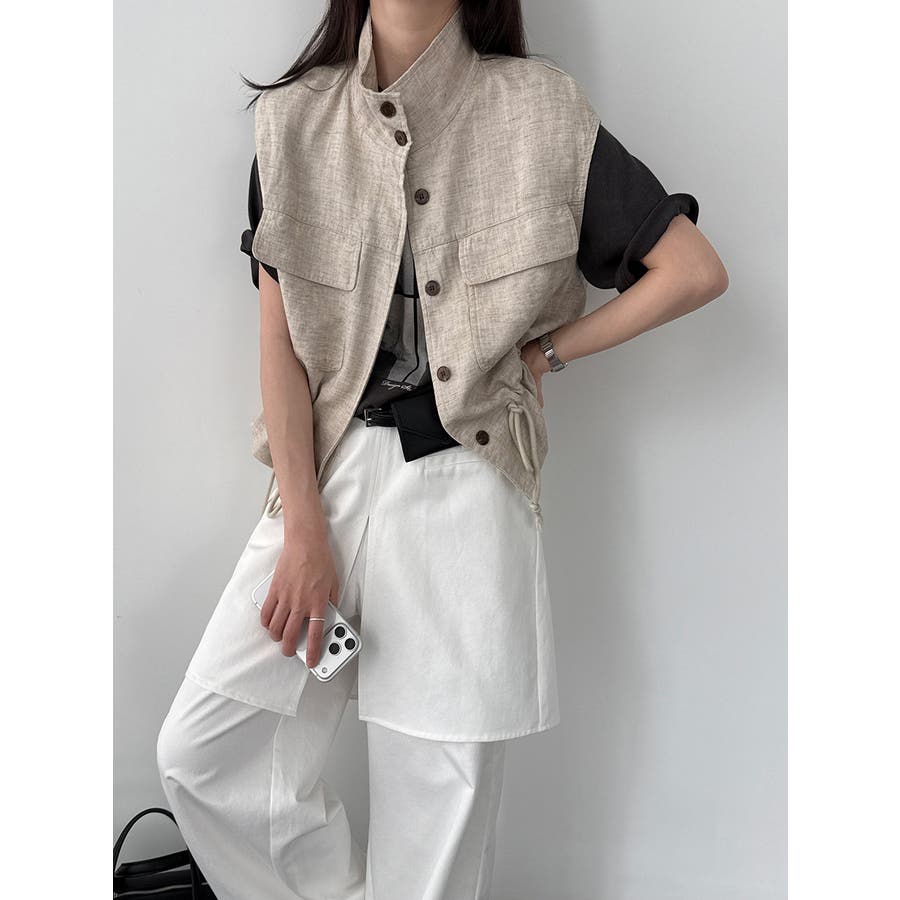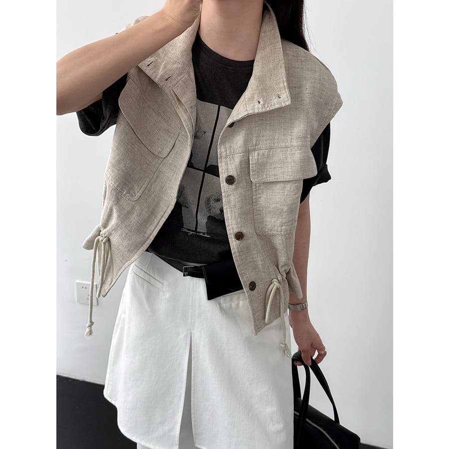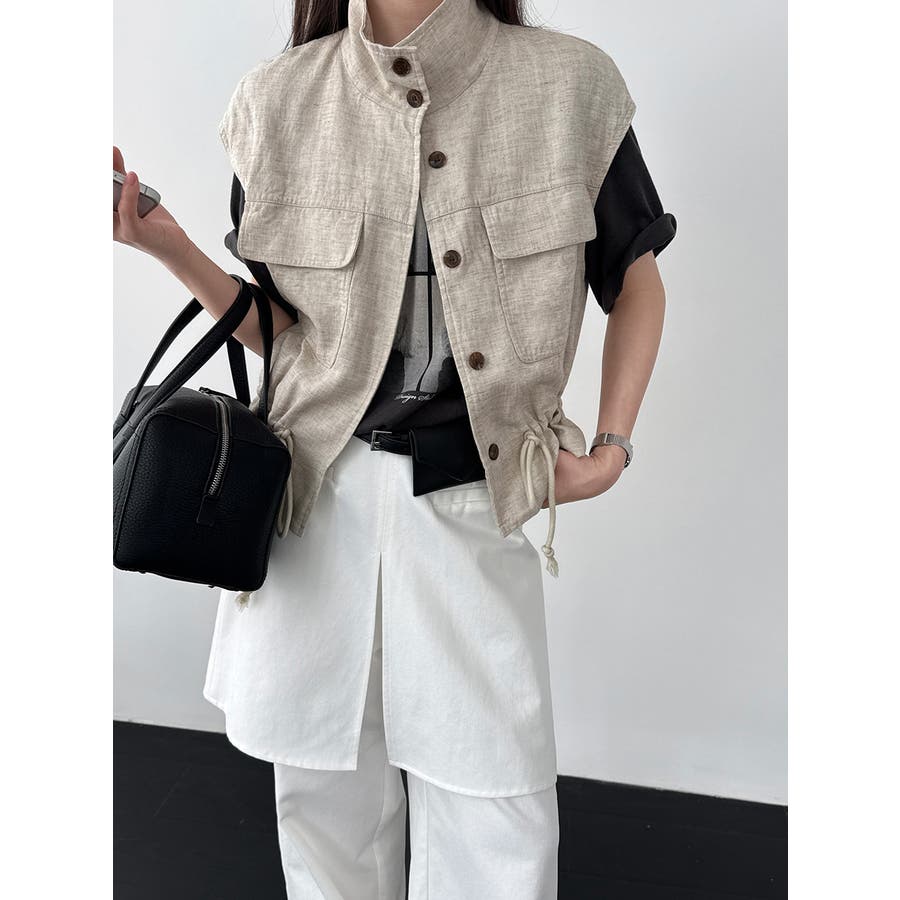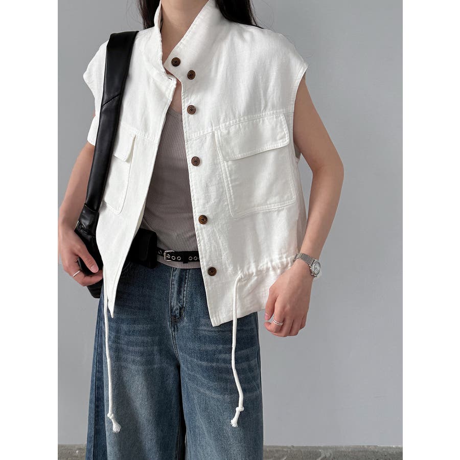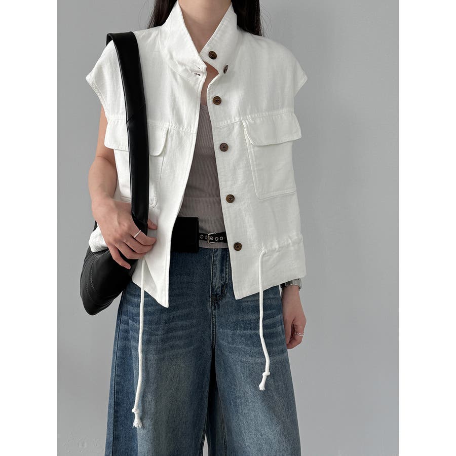 スタンドカラー ワークポケット ドローストベスト