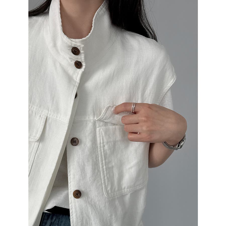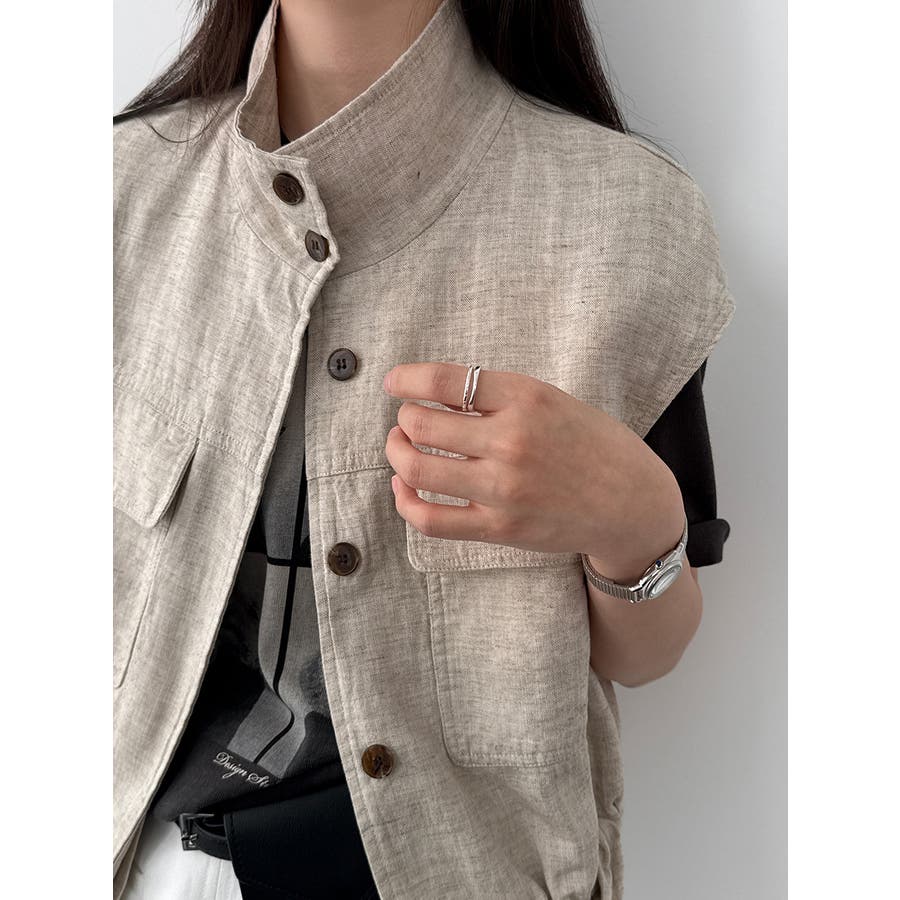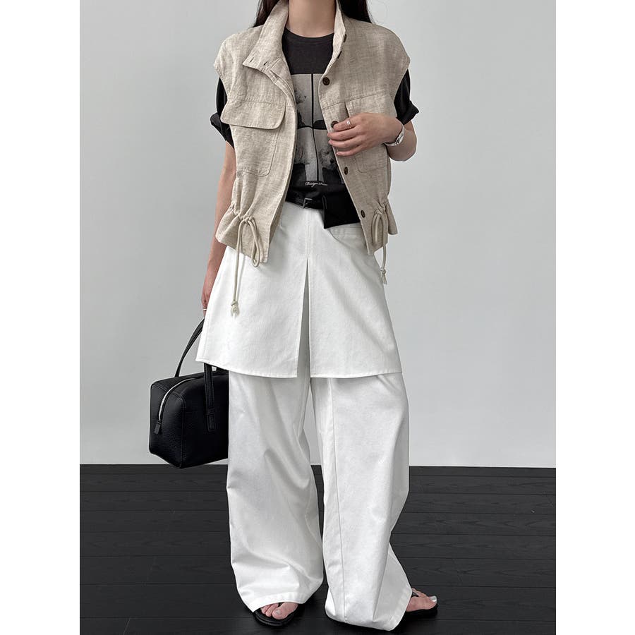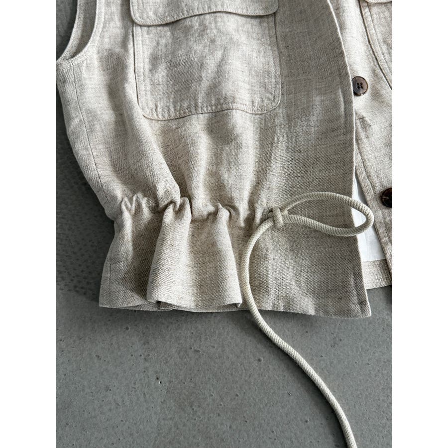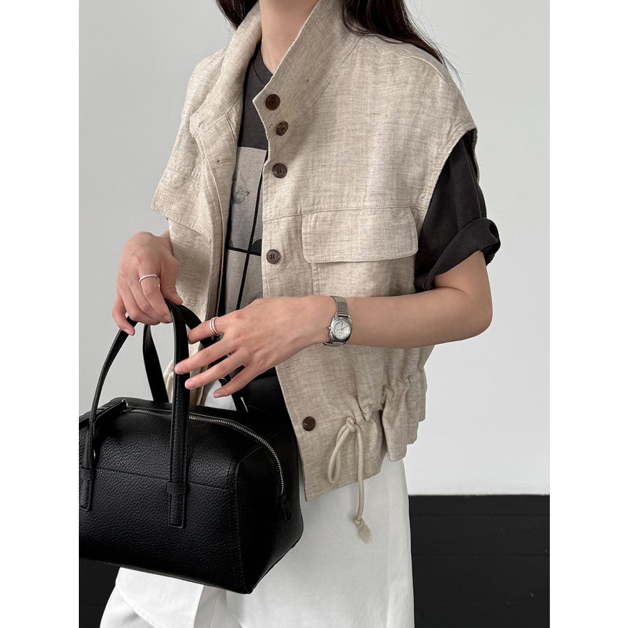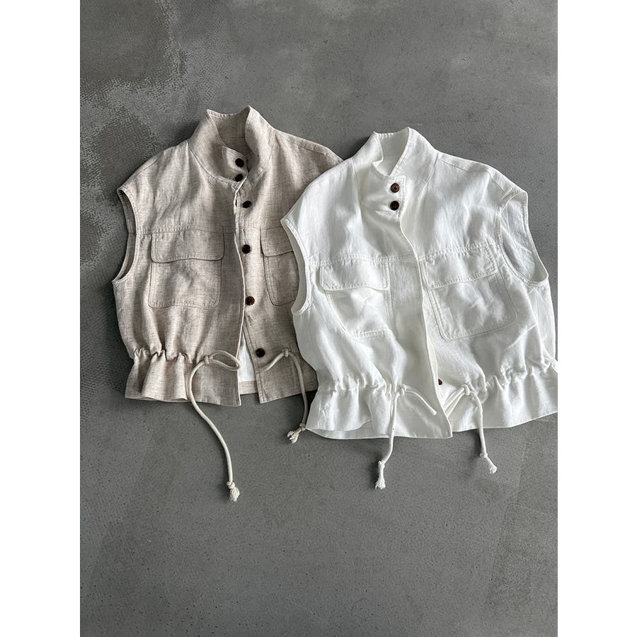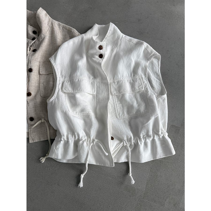 スタンドカラー ワークポケット ドローストベスト