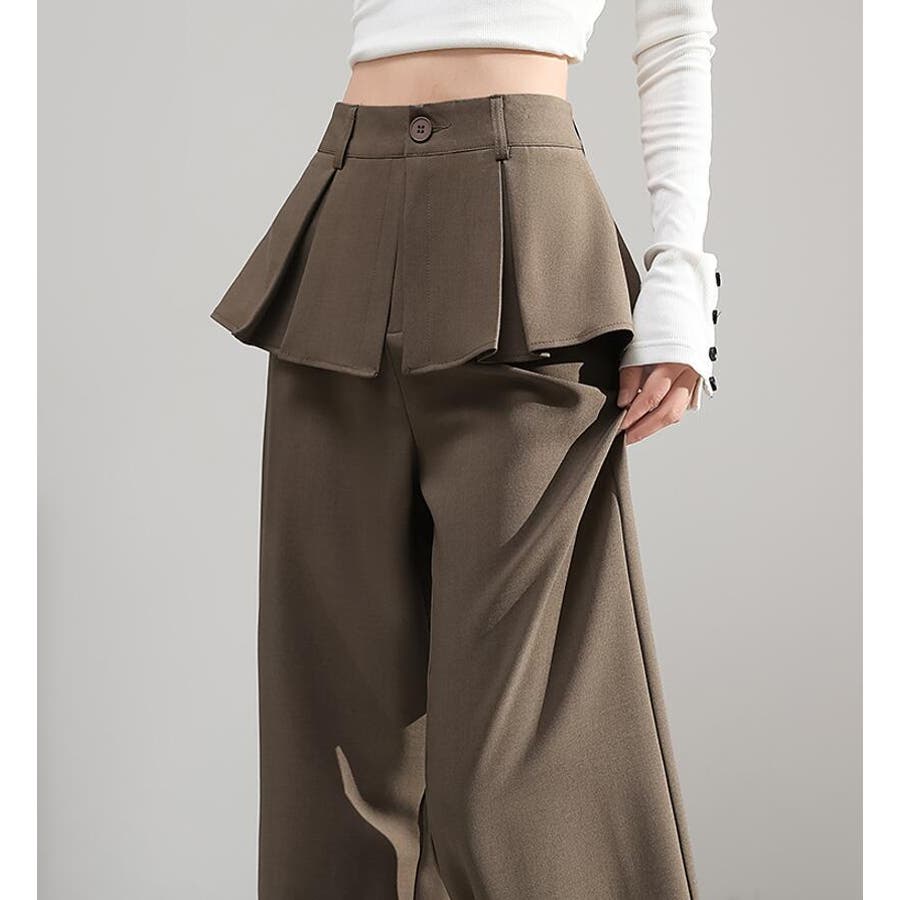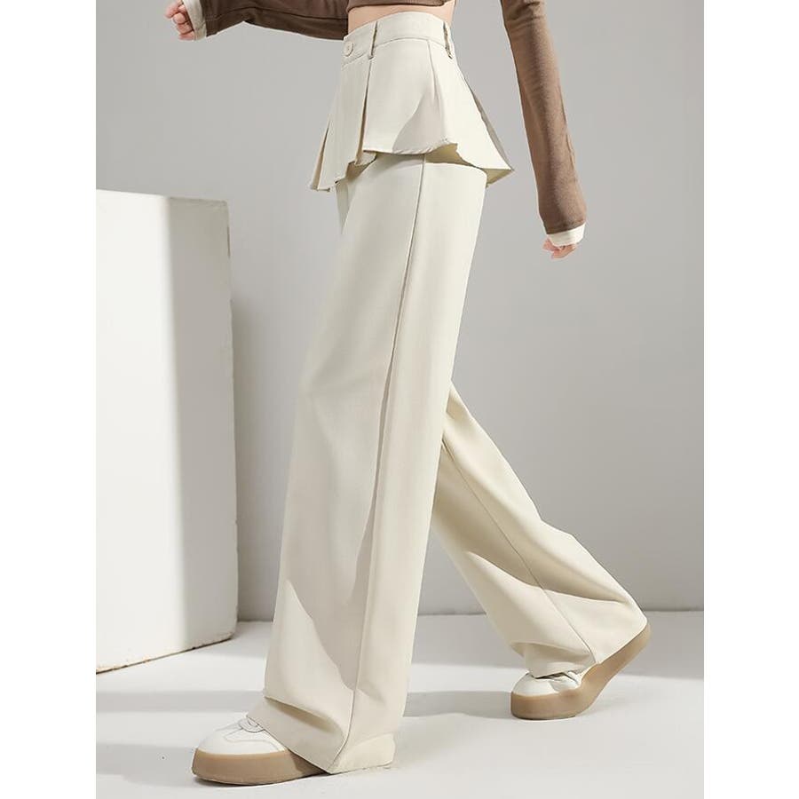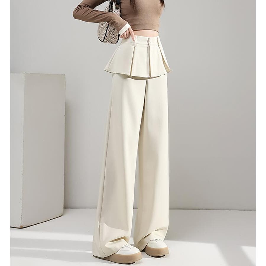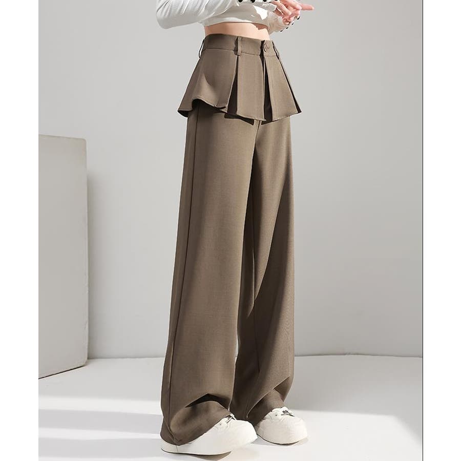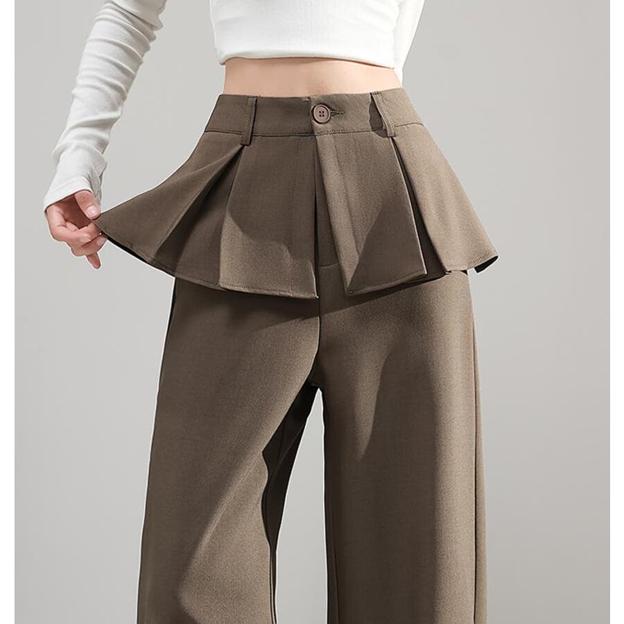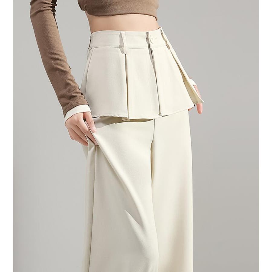 フェイクツーピースデザイン プリーツアクセントワイドパンツ
