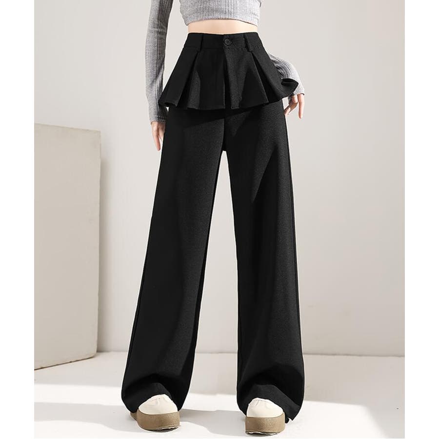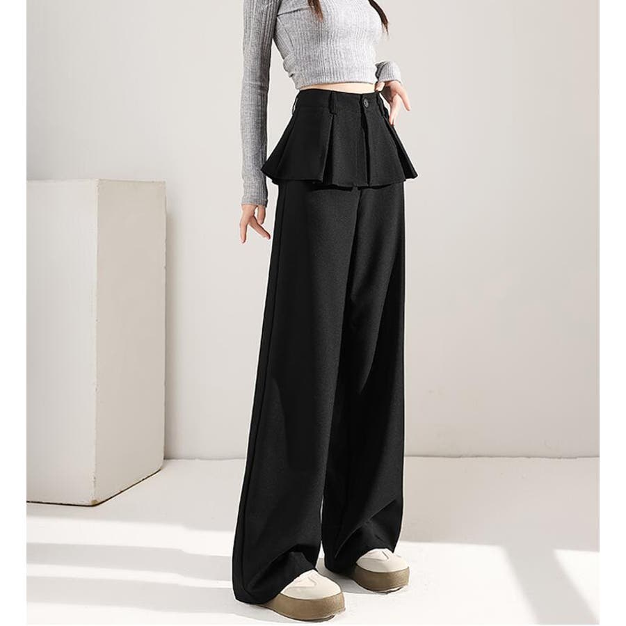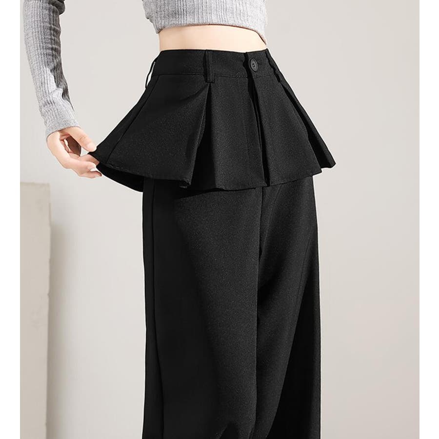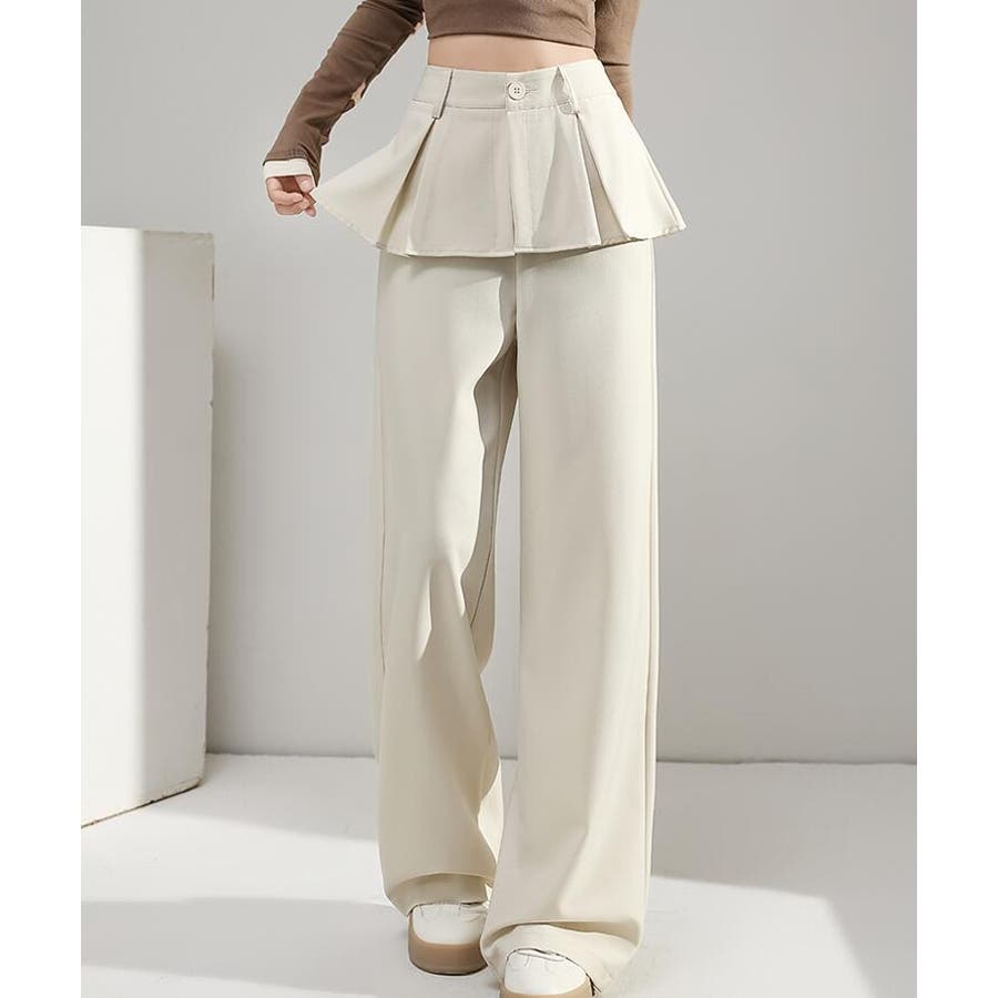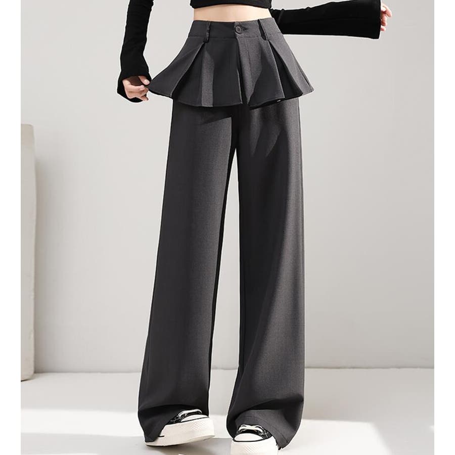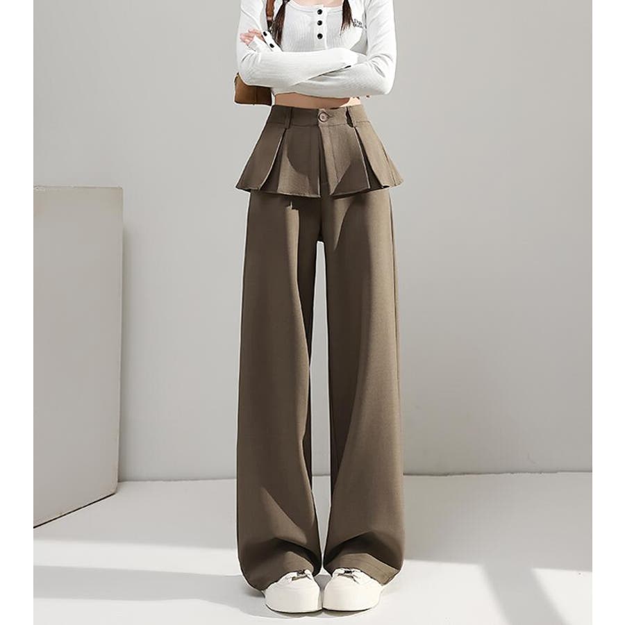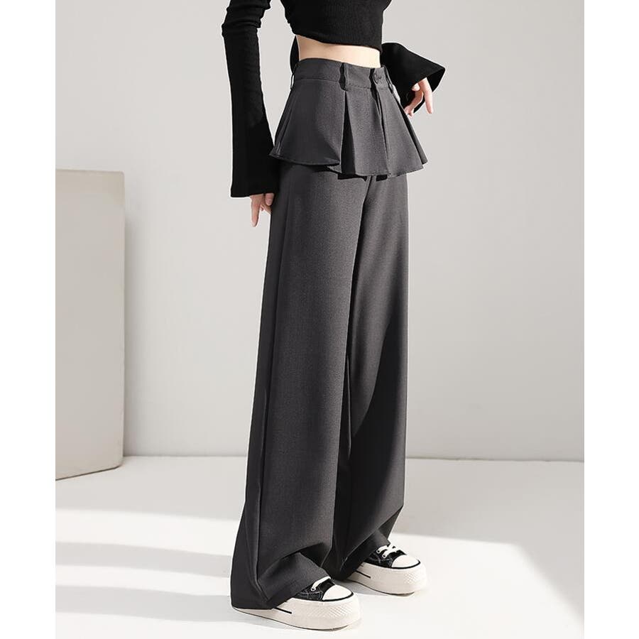 フェイクツーピースデザイン プリーツアクセントワイドパンツ