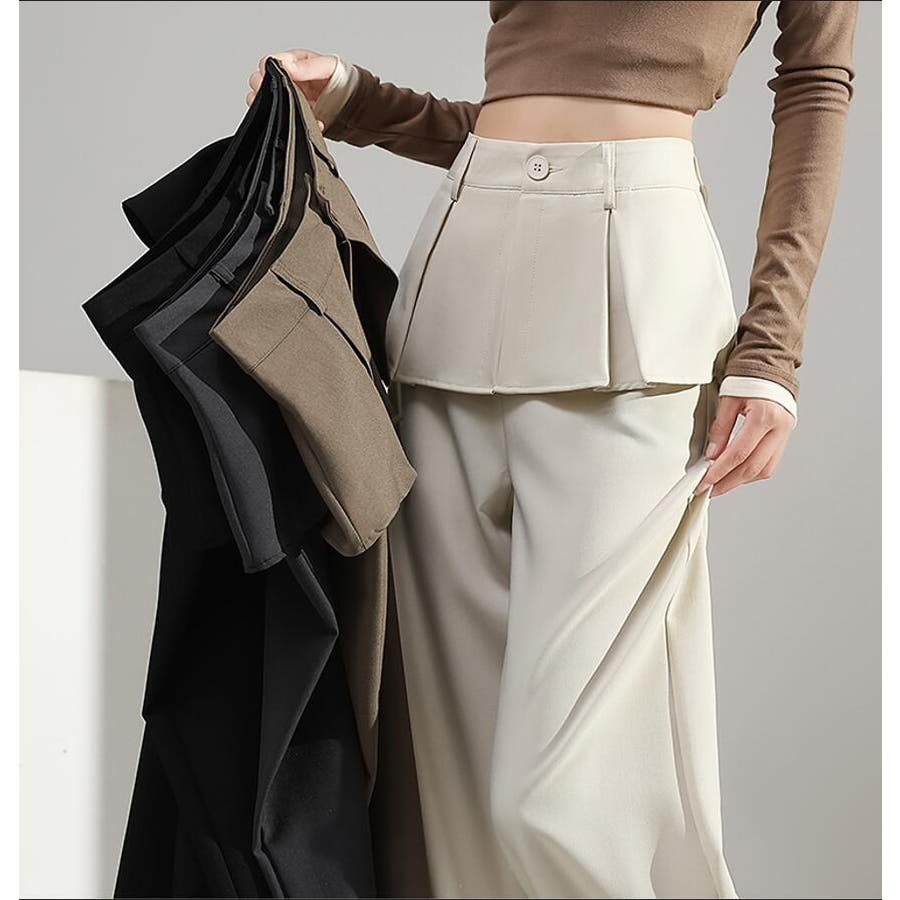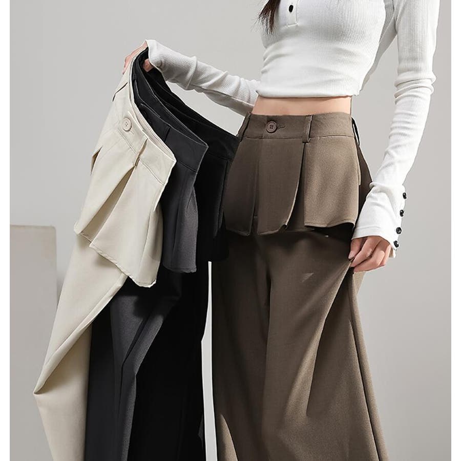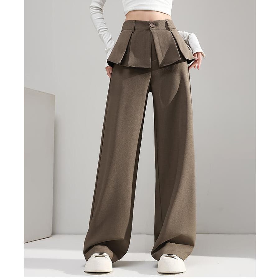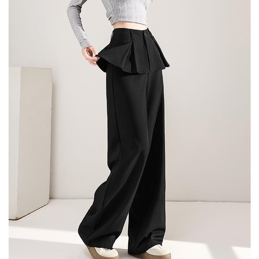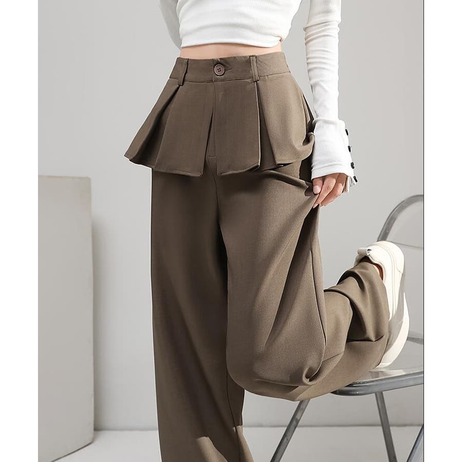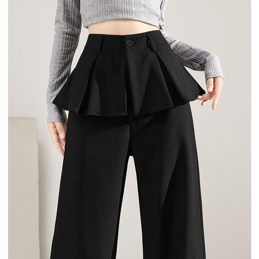 フェイクツーピースデザイン プリーツアクセントワイドパンツ